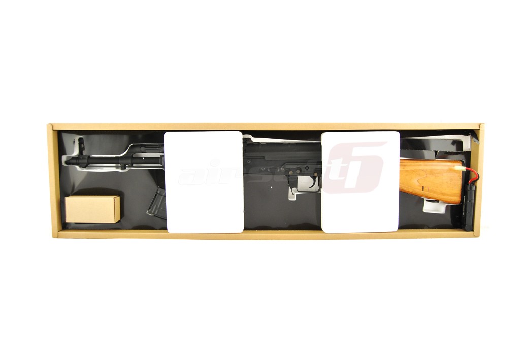 Gearboxul este versiune 3, versiune binecunoscuta ca fiind una foarte robusta. Carcasa gearboxului si rotile sunt din metal iar bucsele din otel. Pistonul, capul de piston si capul de cilindru sunt realizate din plastic ABS de calitate. Motorul este unul high torque capabil sa traga acuri destul de puternice, cadenta nefiind aspectul sau forte. Puterea replicii de airsoft, este insa un aspect important, putere care este relativ mare, intre 125 si 130 metri pe secunda masurati cu bile de 0.20g. Se recomanda folosirea bilelor de 0.28g.