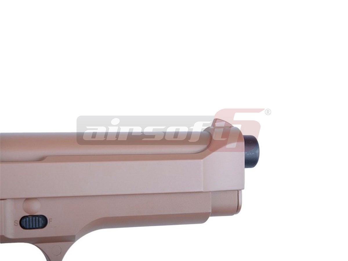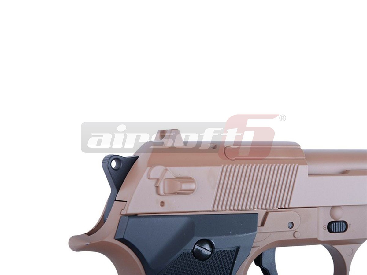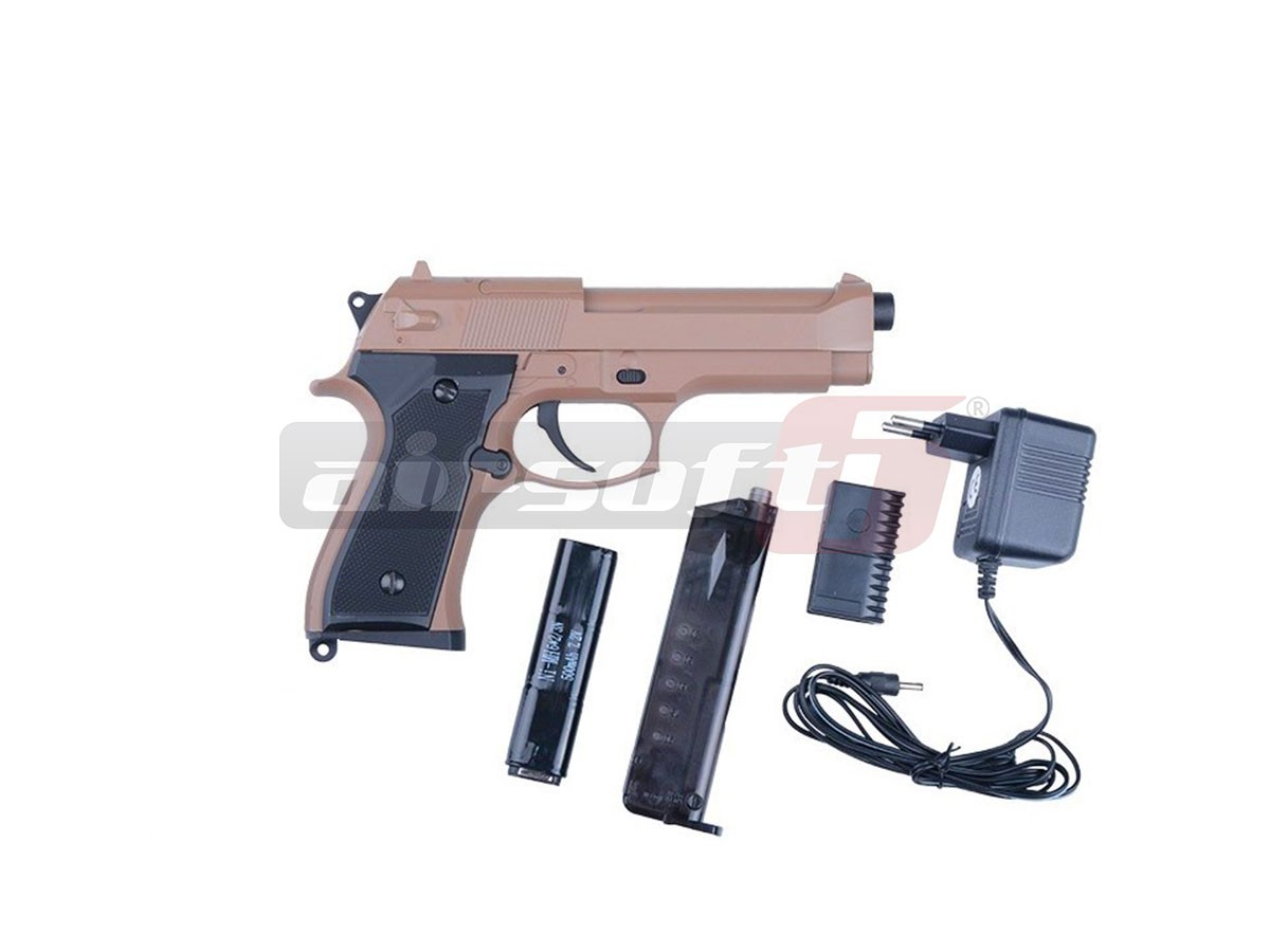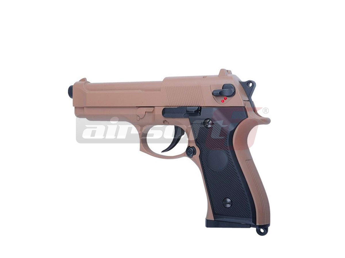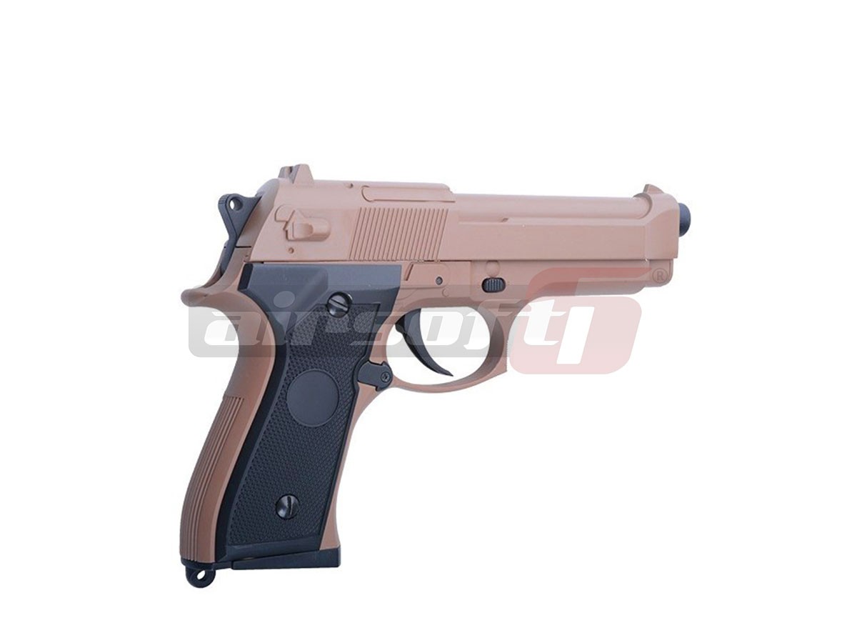 Aceasta replica de airsoft fabricata de Cyma la prima vedere prezinta un Beretta M9 autentic, la primul contact in schimb ne dam seama ca ceva nu este intocmai cum ne-am fi asteptat. Acest lucru datorita faptului ca este un pistol cu functionare electrica. In locul mecanismelor interne si a compartimentelor de inmagazinare a gazului, se afla un gearbox electric in miniatura capabil sa propulseze bilele din replica atat foc cu foc cat si foc automat.