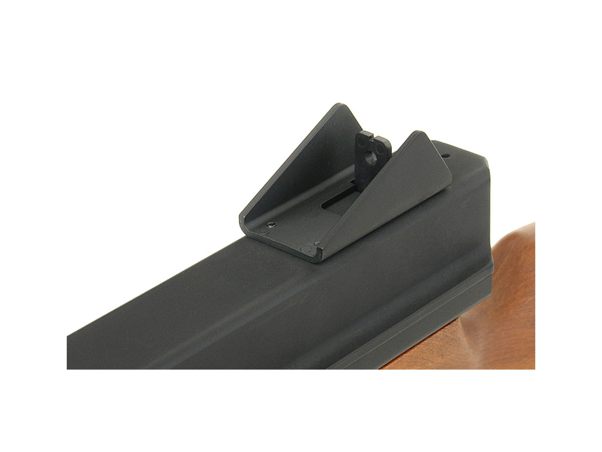 Asa cum a fost invatati de Cyma, avem o replica cu un raport calitate pret excelent. Exteriorul este realizat din metal dar si plastic. Manerul, ulucul si patul sunt realizate din plastic ABS ce imita lemnul. Corpul replicii iti ofera un sentiment de lucru solid si bine facut deoarece cu greu vei gasi jocuri si tolerante. Comenzile precum mag catch-ul, selectorul de tir si siguranta sunt in partea stanga. In spate, in interiorul patului exista spatiul destinat acumulatorului. Pentru asigurarea replicii vom putea folosi cele 2 inele amplasate in extremitatea frontala si din spate.