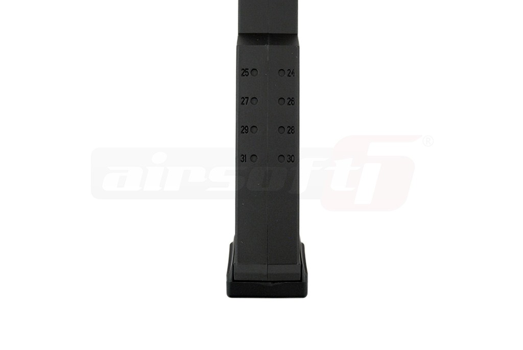 Incarcator de mare capacitate marca CYMA, destinat platformei G17 G18C CM 0.30 AEP. Capacitatea acestui incarcator este de aproximativ 100 de bile iar incarcarea se realizeaza prin orificiul de evacuare a bilelor. Se recomanda folosirea unui alimentator cu bile pentru incarcarea acestui incarcator. Pentru buna functionare nu se recomanda folosirea in abundenta a uleiului siliconic. Incarcatorul este fabricat din plastic ABS.