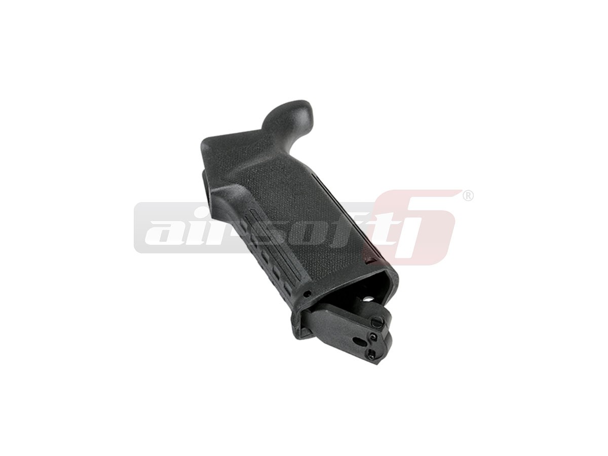 Pistol grip destinat platformelor AM4 . Manerul este fabricat in totalitate din plastic ABS de calitate iar montarea se realizeaza intocmai precum manerul original fixanduse cu ajutorul surubului din capat. Atentie la montare, trebuie tinut cont de aranjamentul cablurilor motorului. Folosind acest maner, prinderea utilizatorului este mai ferma astfel replica devenind mai usor de manevrat.