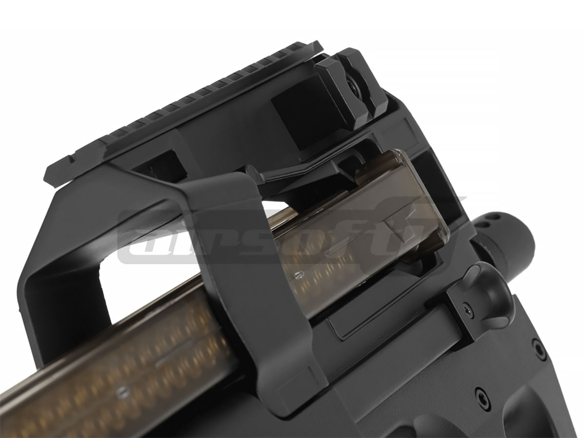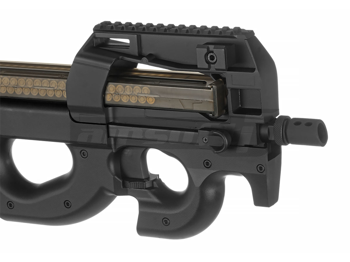 CYMA reuseste sa ne incante inca odata cu lansarea acestei platforme. Copiaza destul de atent platforma P90 originala iar ca materiale sunt utilizate; plasticul ABS pentru partea inferioara si metal pentru partea superioara. Asemenea armei adevarate comenzile sunt ambidextre iar tragaciul permite 2 stadii. Chiar daca selectorul replicii este setat pentru Auto, apasarea pe jumatate a tragaciului permite functia Semi. Incarcatorul se monteaza si se demonteaza asemenea armei adevarate in partea superioara prin apasarea simultana a celor doua butoane aflate pe lateral. Datorita sistemului bullpop, replica este foarte bine echilibrata permitand totodata o lungime respectabila a tevii interne.