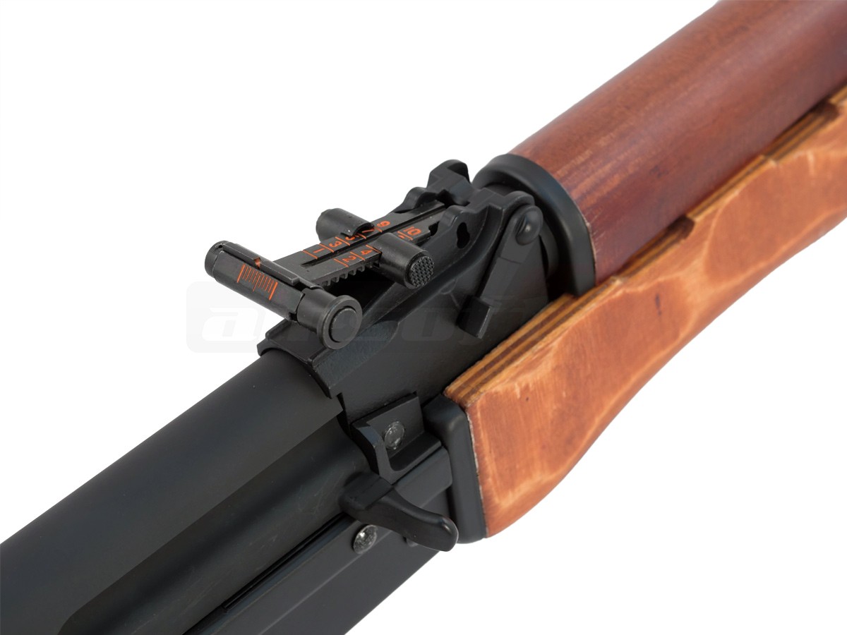 Gearboxul este versiune 3, versiune binecunoscuta ca fiind una foarte robusta. Carcasa gearboxului si rotile sunt din metal iar bucsele din otel. Pistonul, capul de piston si capul de cilindru sunt realizate din plastic ABS de calitate. Motorul este unul high torque capabil sa traga acuri destul de puternice, cadenta nefiind aspectul sau forte. Reglajul nivelului de hopup este situat in interiorul portului ejector. Puterea replicii de airsoft, este insa un aspect important, putere care este relativ mare, intre 120 - 125 metri pe secunda masurati cu bile de 0.20g. Se recomanda folosirea bilelor de 0.25g.