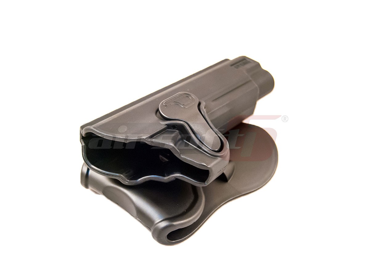Avem placerea de a va prezenta tocul de pistol Cytac destinat platformelor 1911. Acest toc este gandit pentru atasarea direct pe centura sau pe echipamente tactice prevazute cu sisteme de prindere molle cu ajutorul unui adaptor. Este un toc rigid, fabricat din polimer plastic iar asigurarea pistolului in pozitie se realizeaza cu ajutorul unui buton de mari dimensiuni, usor accesibil. Avantajul acestui toc este usurinta de exploatare. Se fixeaza rapid pe centura iar odata fixat, introducerea si extragerea pistolului este extrem de rapida dar totodata sigura.Acest toc ofera posibilitatea de rotire a intregului ansamblu 360°.
