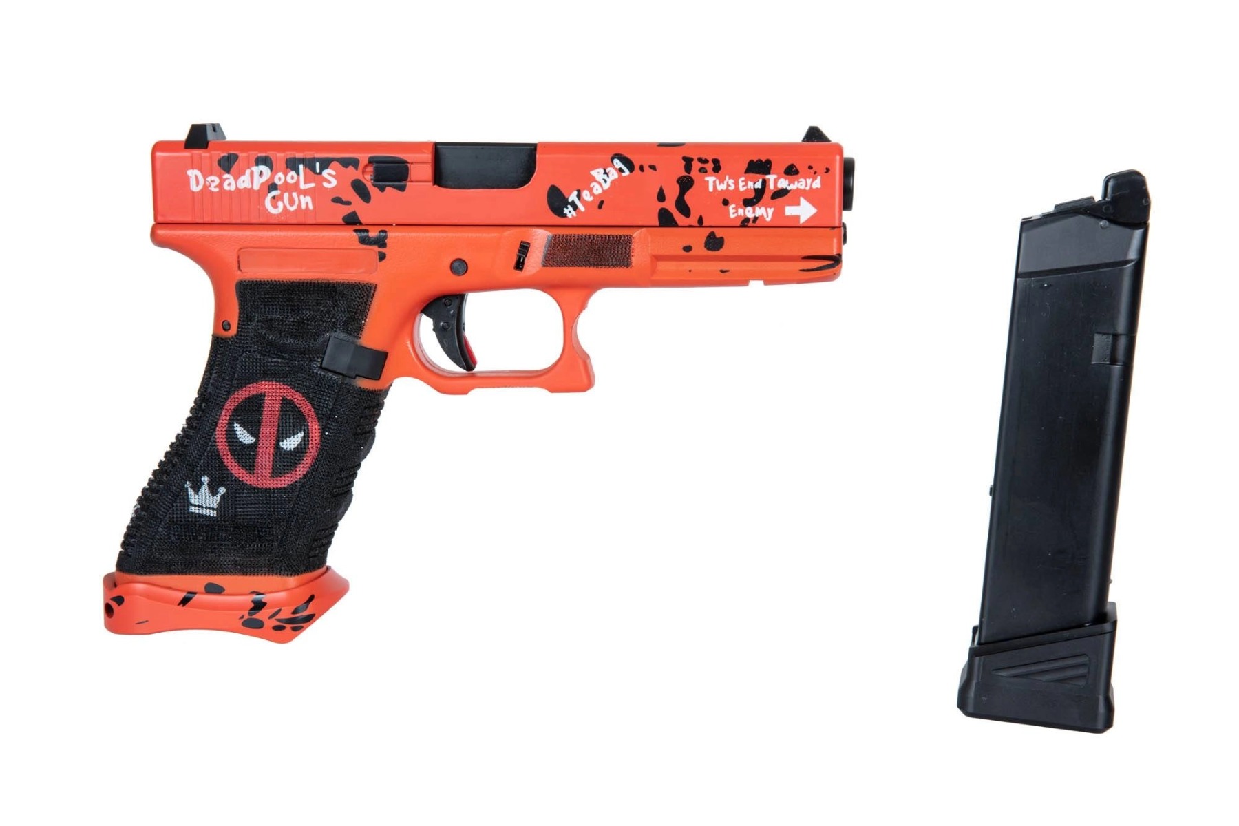 Pistolul D-Boys 301 G17 Deadpool este un pistol din seria G inscriptionat cu motive populare din Deadpool. La baza acestui acestui model este varianta de G17 Force Custom de la WE Airsoft, replica cunoscuta pentru calitatea oferita.