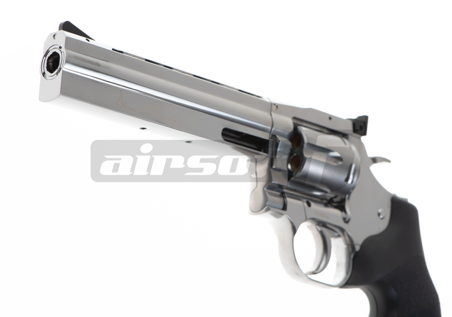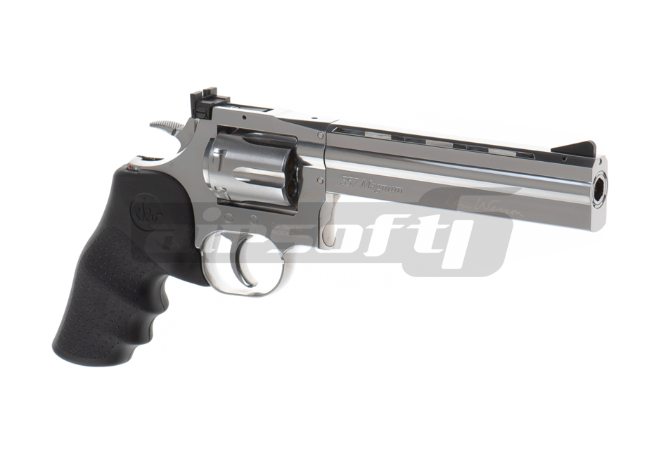 Dan Wesson 715 6 inch, un pistol superb dedicat colectionarilor si nu numai. Principiul de functionare este principiul revolverului iar ca sursa de gaz este folosit CO2-ul. Incarcatorul pistolului este reprezentat de cartusele false din alama cu varf din plastic care pot stoca cate o bila de 6mm fiecare, astfel cu un total de 6 bile incarcate, nu este un pistol tocmai gata de actiune pe terenul de joaca. In shimb este foarte recomandat pentru tir sportiv. Senzatia oferita de manuirea acestei replici este cat se poate de asemanatoare cu cea a folosirii unui revolver adevarat.