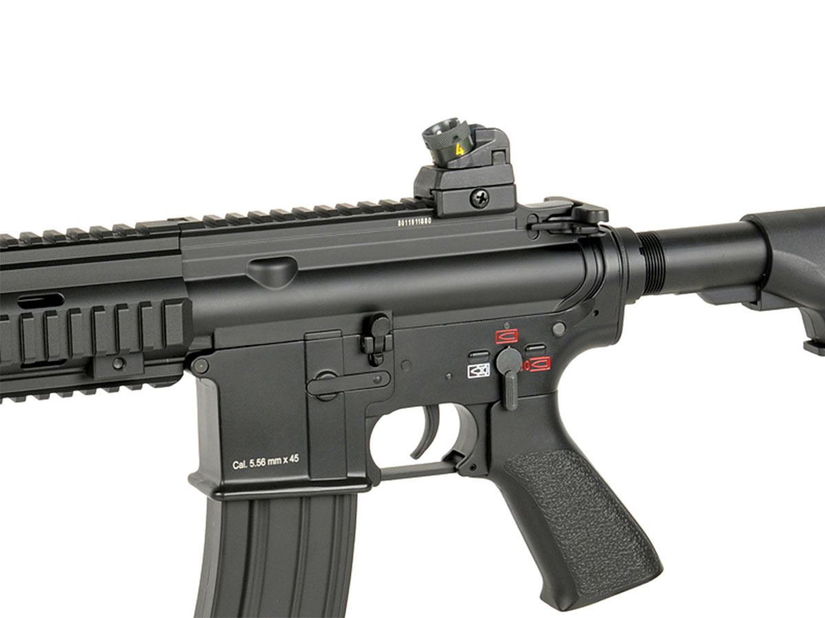 Exteriorul replicii este realizat aproape total din metal, iar componentele din ABS sunt calitative si robuste. Corpul armei impreuna cu carcasa, declansatorul, mag-catch-ul, patul rabatabil sunt realizate din metal, iar alte componente precum teava externa, flash-ul sunt realizate din aluminiu. Patul replicii este pliabil, ajungand la o lungime de 785mm. Incarcatorul replicii este Hi-Cap si inmagazineaza 300 de bile. Replica este prevazuta cu multe sine sandard pe care se pot monta accesorii cum ar fi lanterna sau laser sau sisteme de ochire avansate