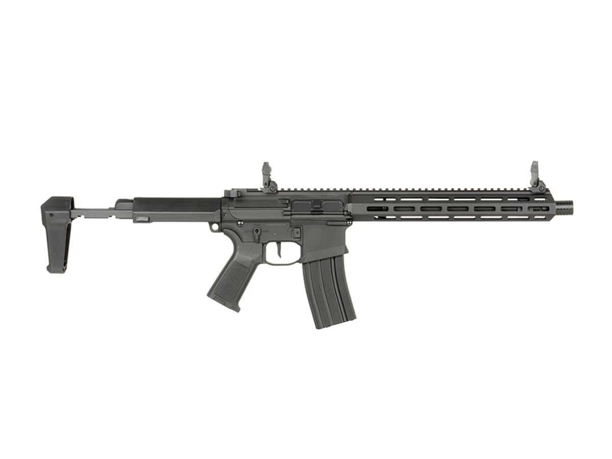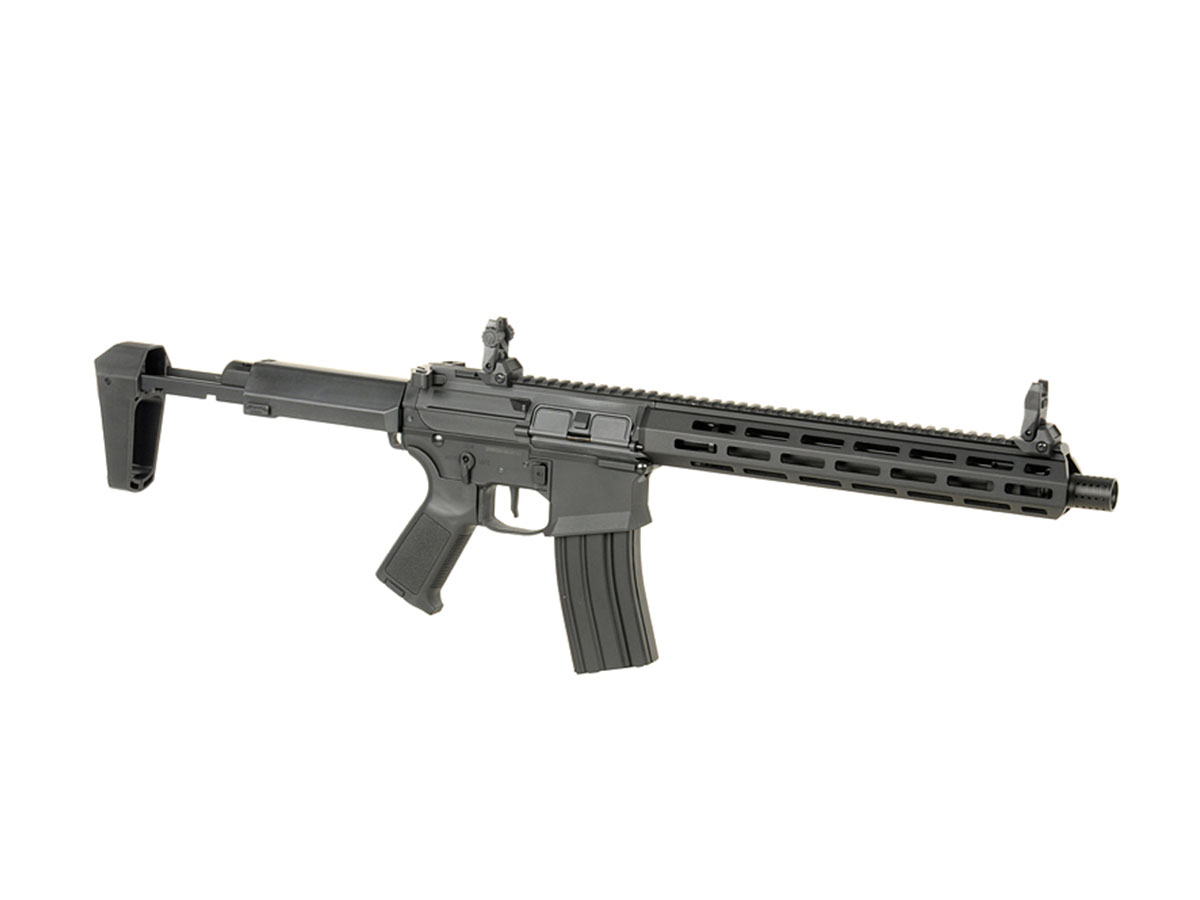 Stim prea bine ca manevrabilitatea buna si confortul tinerii armei in mana sunt doua lucruri esentiale pe terenul de joaca. Acum poti uita de oboseala datorata manevrarii replicilor, datorita utilizarii de nailon armat, in loc de aliaje metalice, care reduce considerabil greutatea. Tot pentru confortul tau, replica este prevazuta cu un maner din ABS texturat, facilitand o prindere mai buna.