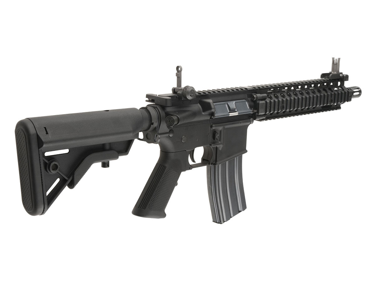 Replica vine cu un incarcator Mid-Cap cu o capacitate de 120 de bile, catari rabatabile pentru sina RIS si 3 prese de maner. In pachetul replicii de airsoft nu sunt incluse nici acumulator nici incarcator pentru acumulator. Se pot utiliza acumulatori NIMH de 8.4V - 9.6V sau 7.4V - 11,1V LiPo. Ca replica sa functioneze la capacitatea maxima, va trebui sa folosesti doar consumabile de calitate.
