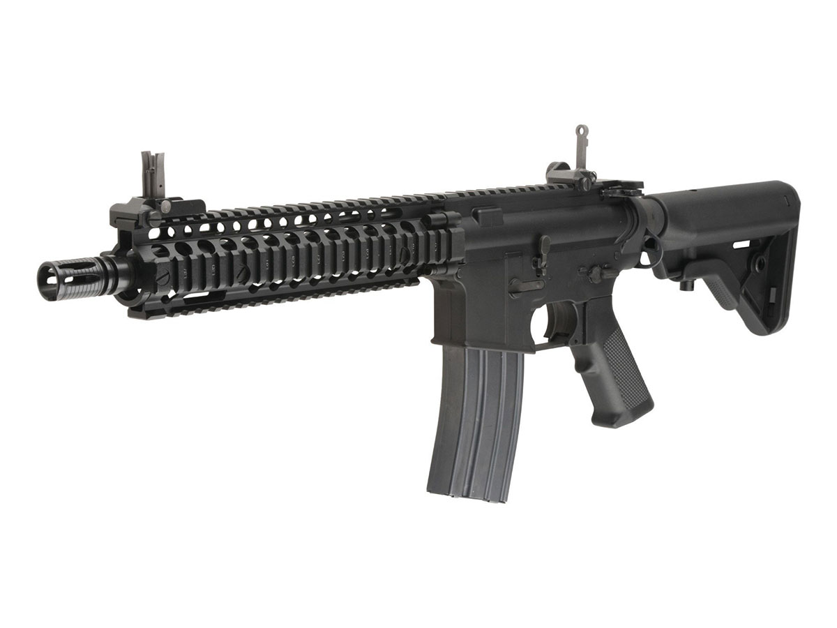 Replica ELAR MARK 18 apartine seriei Elite oferita de E&L. Realismul replicii este dat de metalul din constructia corpului si a ulucului. La fel ca arma reala, patul si manerul sunt realizate din plastic ABS. Ulucul prevazut cu sine RIS pe toate partile, plus sina RIS superioara aditionala, permit o accesorizare vasta, astfel iti poti personaliza arma in cel mai extravagant mod.