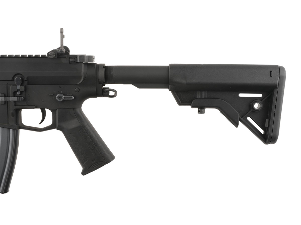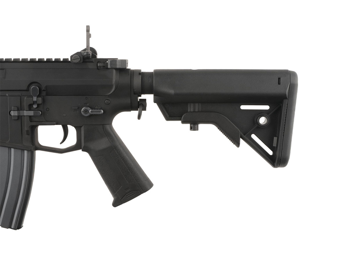 Replica vine cu un incarcator Mid-Cap cu o capacitate de 120 de bile, catari rabatabile pentru sina RIS si 3 prese de maner. In pachetul replicii de airsoft nu sunt incluse nici acumulator nici incarcator pentru acumulator. Se pot utiliza acumulatori NIMH de 8.4V - 9.6V sau 7.4V - 11,1V LiPo. Ca replica sa functioneze la capacitatea maxima, va trebui sa folosesti doar consumabile de calitate.
