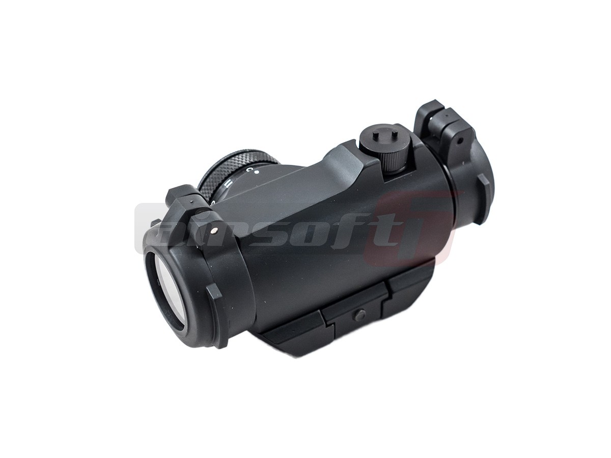 Acest dispozitiv fabricat de Aim-O permite o ochire mai usoara in momentul utilizarii replicilor de airsoft. Este fabricat din aluminiu, reducand greutatea dar pastrand rezistenta. In partea lateral dreapta si in partea superioara exista suruburi de reglaj protejate cu capace menite pentru reglajul dispozitivului. Atentie sa nu le pierdeti deoarece fara aceste capace reglajul va fi mult mai dificil. Pentru alimentare este utilizata o baterie de tip CR1632 3V inmagazinata in interiorul comutatorului pentru ON/OFF si intensitate, amplasat in partea dreapta a dispozitivului. Punctul luminos este rosu, si se poate seta pe oricare din cele 11 pozitii de intensitate.