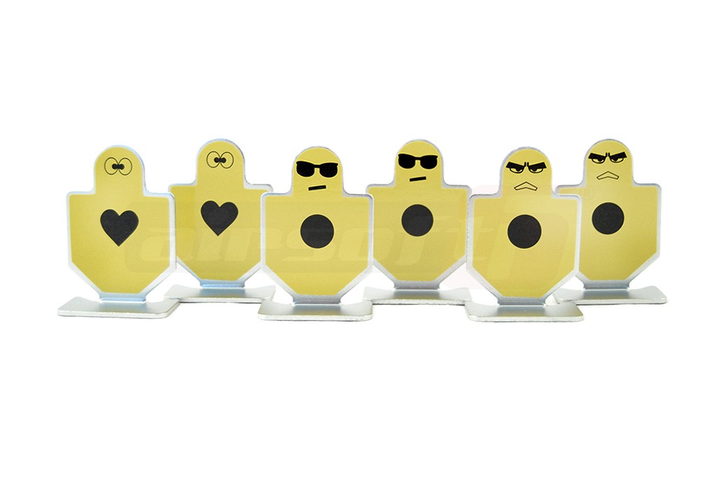 Chiar daca jucatorii de airsoft nu sunt pe teren, acestia in permanenta incearca sa isi imbunatateasca echipamentul sau performantele. De cele mai multe ori diverse obiecte de prin casa sau curte ajung astfel sa fie folosite pe post de tinte. Noi va oferim o solutie eleganta pentru aceasta problema. Un set de 6 tinte fabricate din aluminiu pe care le putati utiliza pentru imbunatatirea preciziei. Va sfatuim sa fiti totusi atenti la utilizare deoarece exista sansa ca bilele sa ricoseze intr-o directie nedorita. Va recomandam sa purtati ochelari de protectie cand utilziati aceste tinte.