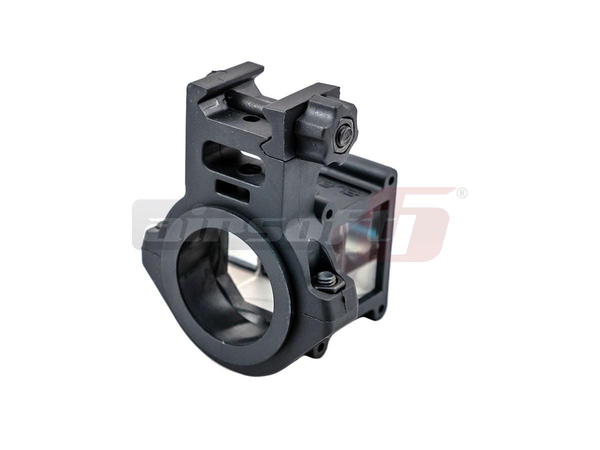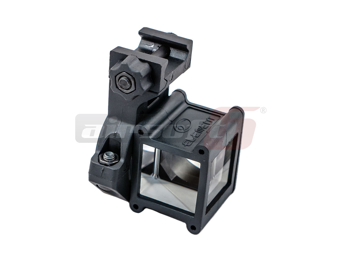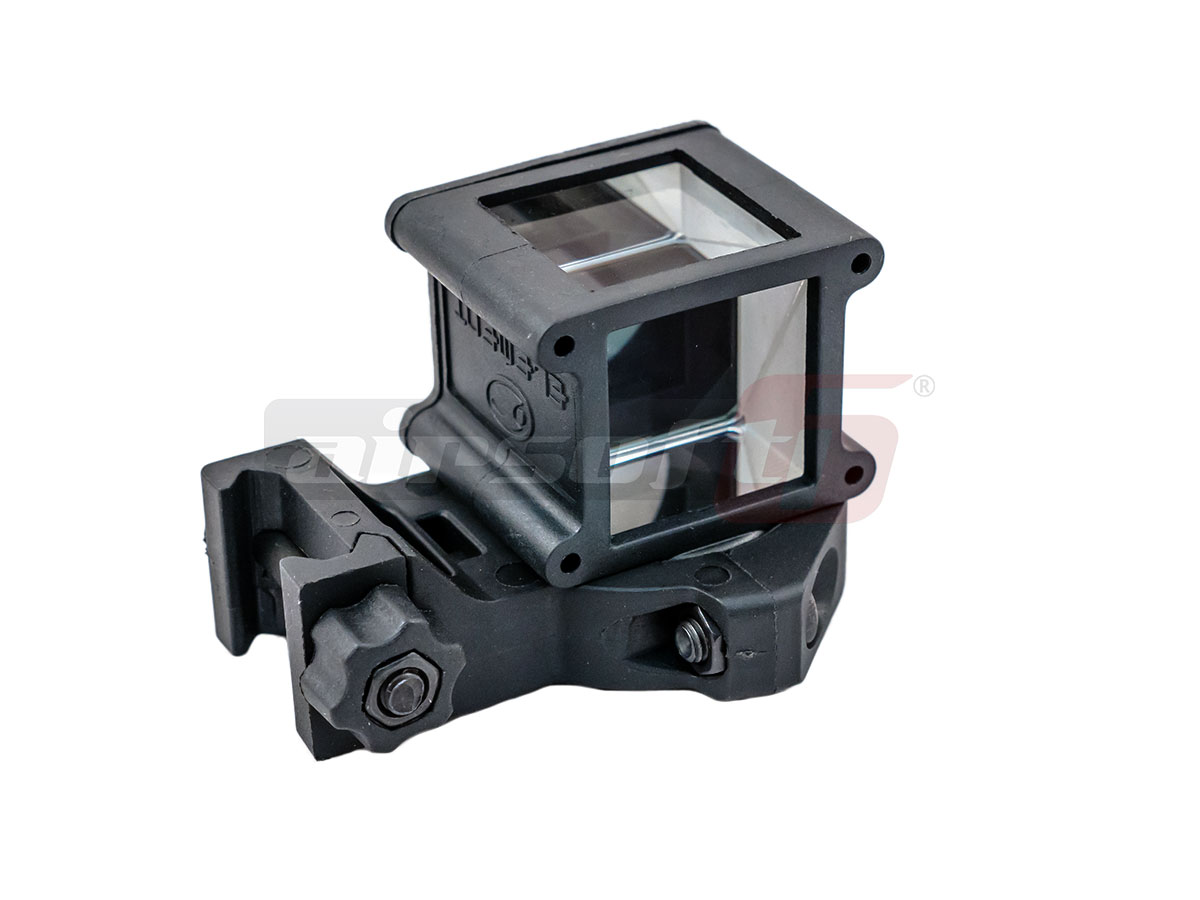 Pe scurt, acest dispozitiv va ajuta sa va uitati dupa colt. Exista mari sanse ca utilizarea lui sa atraga controverse dar utilizat corect nu ar trebui sa cauzeze nici o problema. Este realizat in mare parte din plastic, mai putin suruburile si piulitele. Designul sau recomanda utilizarea impreuna cu un dispozitiv optic de ochire si permite vizualizarea normala a imaginii dar si la 90 de grade. Dispozitivul poate fi atasat pe orice sina clasica 20-22 mm si se asigura cu un surub din plastic de mari dimensiuni, usor de strans cu mana libera.