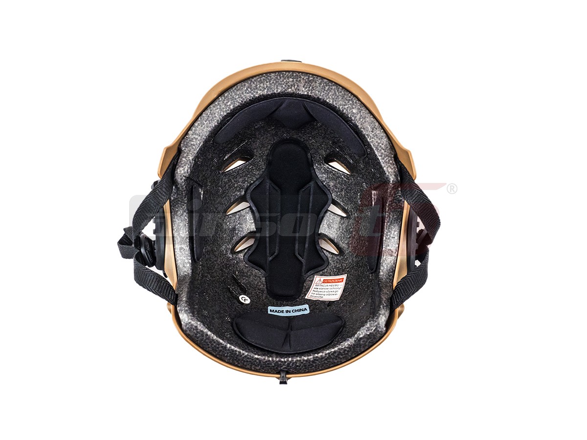 Aceasta casca fabricatie Emerson copiaza modelul Ops-Core EXF Helmet. Casca este fabricata din plastic iar in interior exista polistiren moale. Pentru asigurarea ferma a castii pe cap, aceasta este prevazuta cu un sistem de prindere in jurul barbiei si a cefei, bineinteles reglabil.