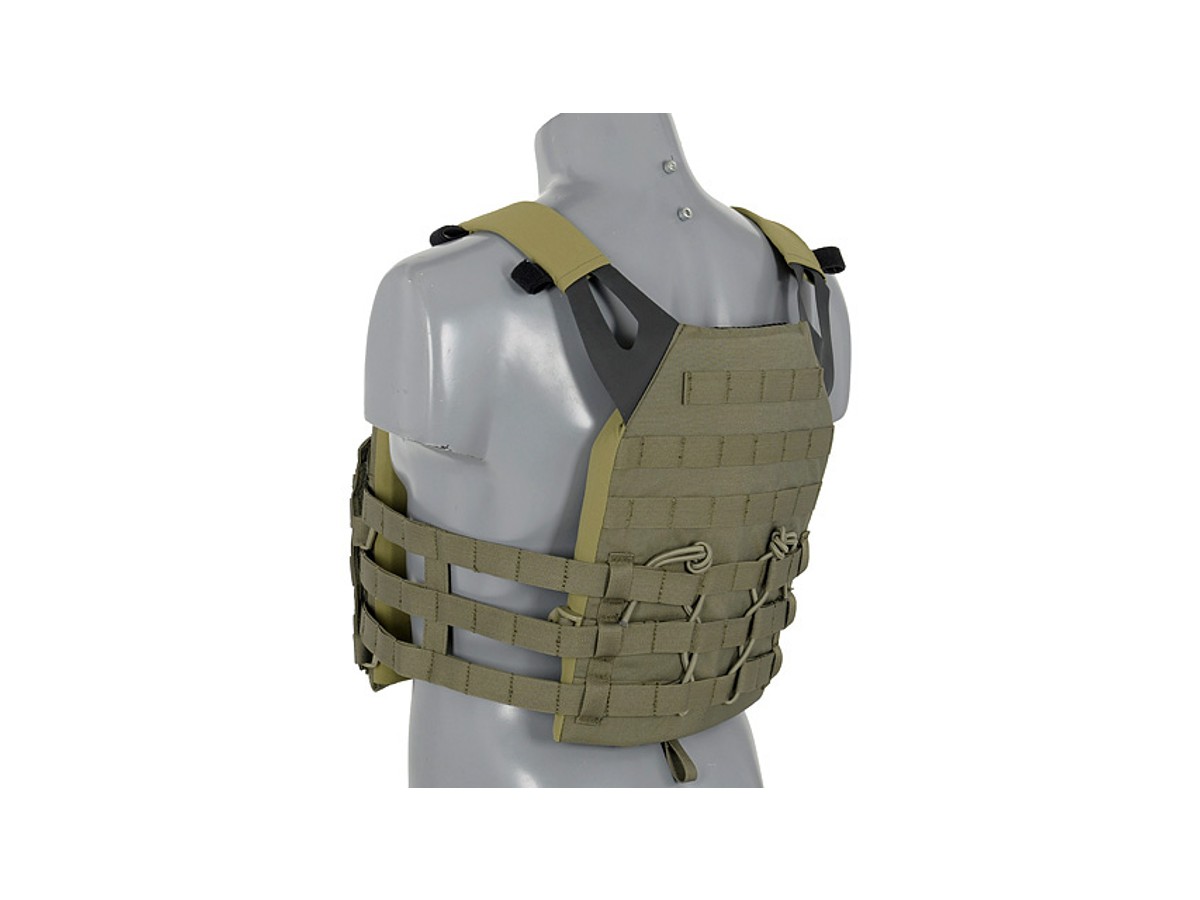 La baza aceasta vesta este o platforma molle ce poate fi usor accesorizata in functie de preferintele utilziatorului. In sectiunile din fata si din spate exista placi moi. In caz de necesitate aceste placi pot fi indepartate. Materialul utilizat este nylonul 600D
