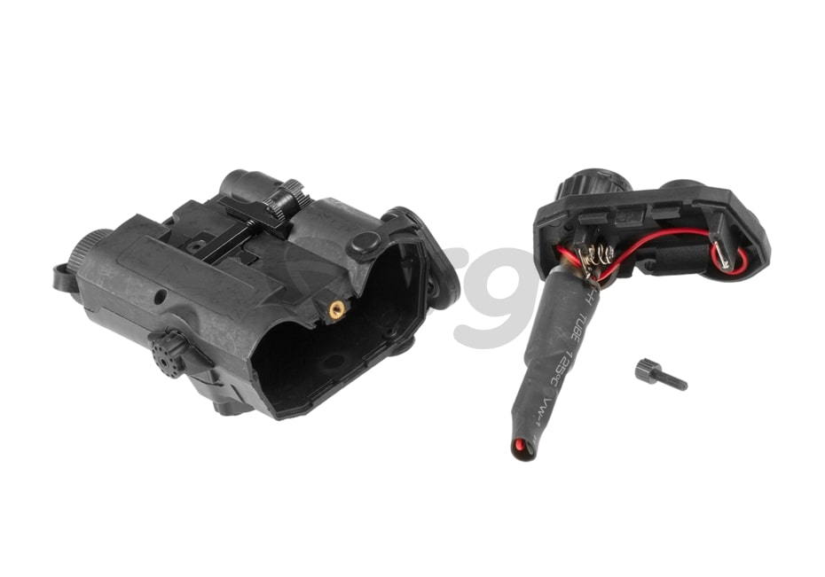Carcasa cu modul laser functional ce replica modelul AN/PEQ-15 destinata acumulatorilor de tip Li-Po, Ni-MH si nu numai. Prinderea se face cu ajutorul sistemului de prindere RIS situat in partea de jos a carcasei, cu mana libera.