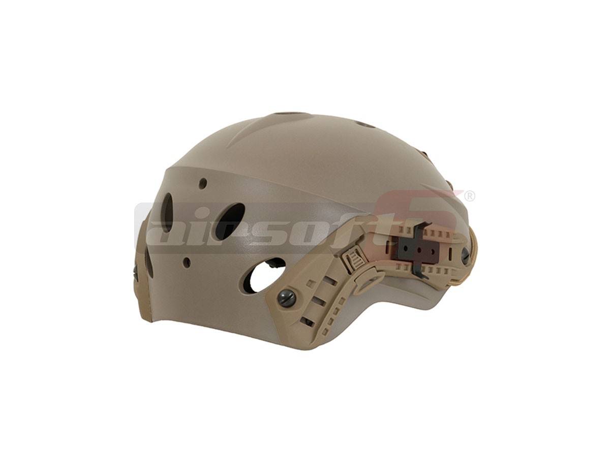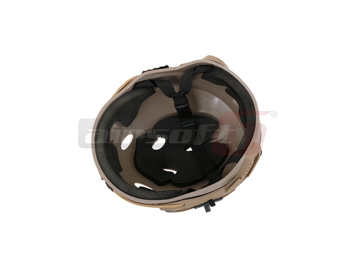 Aceasta casca fabricatie FMA copiaza modelul Special Forces FAST Helmet. Casca este fabricata din plastic iar in interior exista polistiren moale si paduri din burete pentru imbunatatirea confortului. Pentru asigurarea ferma a castii pe cap, aceasta este prevazuta cu un sistem de reglare rapid in jurul capului dar si o curea in jurul barbiei cu carabina.