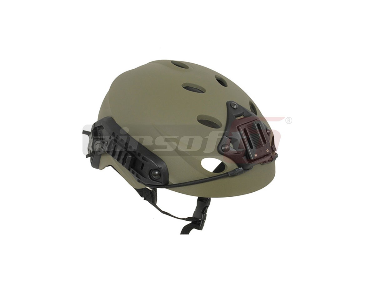 Aceasta casca fabricatie FMA copiaza modelul Special Forces FAST Helmet. Casca este fabricata din plastic iar in interior exista polistiren moale si paduri din burete pentru imbunatatirea confortului. Pentru asigurarea ferma a castii pe cap, aceasta este prevazuta cu un sistem de reglare rapid in jurul capului dar si o curea in jurul barbiei cu carabina.