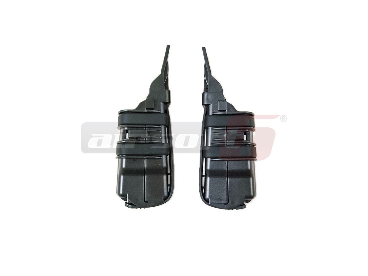 Aceste port incarcatoare pistoale fabricate de FMA reprezinta tehnologia de ultima generatie in materie de buzunare port incarcatoare. Sunt fabricate din plastic, permitand astfel o rigiditate mult imbunatatita fata de port incarcatoarele clasice din cordura. Se pot prinde/lega pe o gama larga de accesorii precum; veste tactice, centuri utilitare, platforme molle dar si altele. Sistemul de fixare este rudimentar dar eficient. Lateralele port-incarcatorului sunt arcuite spre interior, mentinand sub presiune incarcatorul atunci cand este transportat. In pachet exista 2 bucati.