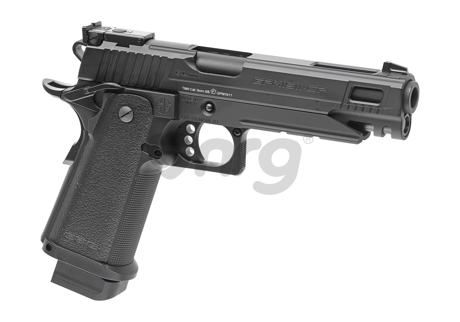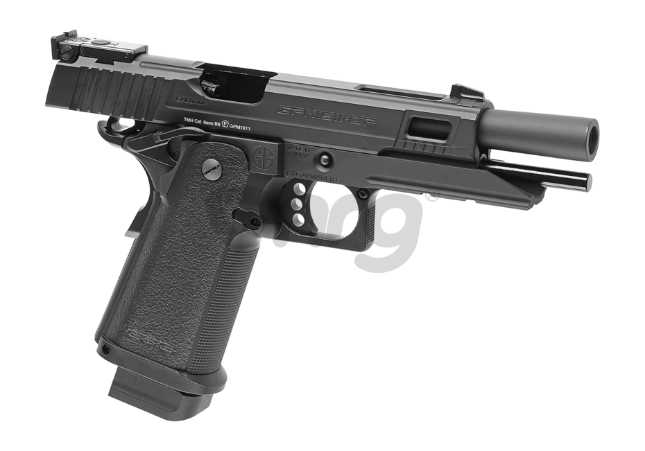Replica de airsoft GPM 1911 CP MS fabricat de G&G este copie 1:1 cu modelul 2011. Este fabricat in mare parte din metal, mai putin manerul care este din polimer. Reculul este rapid si ofera un feedback bun. Siguranta este ambidextra, situata deasupra manerului. In partea dreapta exista butonul pentru indepartarea incarcatorului. In partea inferioara exista o sina pe care vor putea fi montate accesorii tactice. Sistemul de ochire este reglabil.