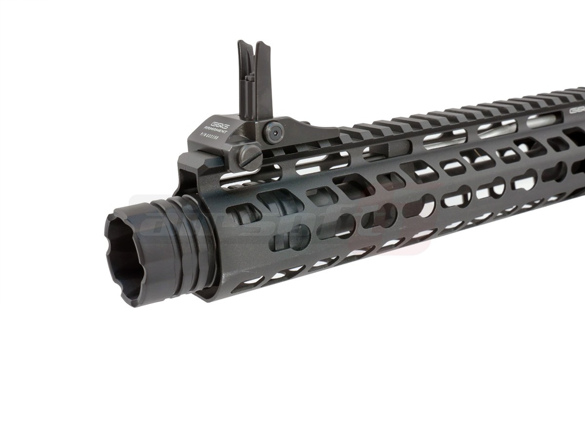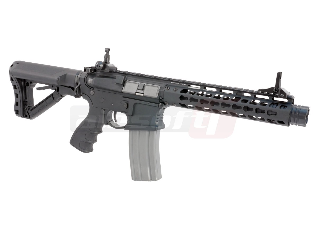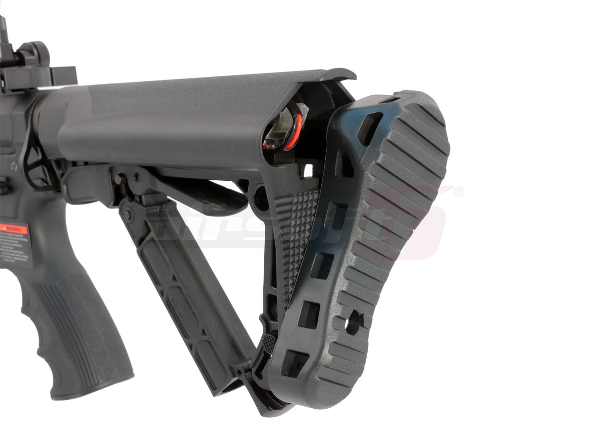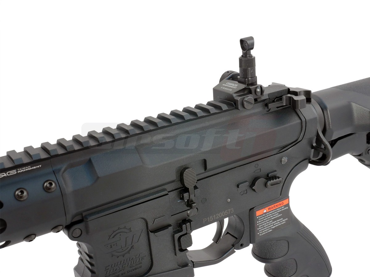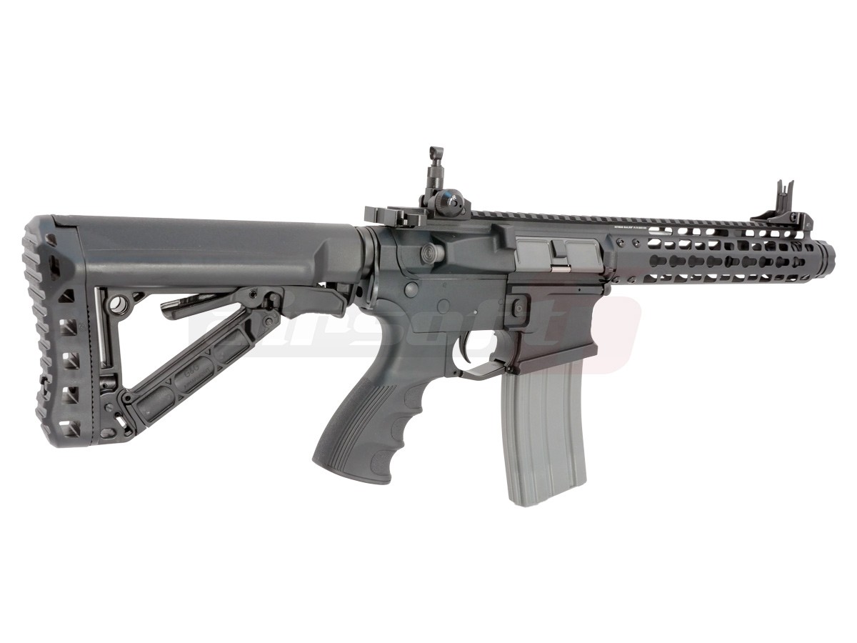 Avem placerea de a va prezenta noua gama de produse G&G, seria CM16 Wild Hog 9". Aceasta serie face parte din categoria intermediara oferita de G&G. Da, intradevar, corpul replicii de airsoft este fabricat din material plastic. Este vorba de fibra de sticla ramforsata, pe care multi jucatori o considera mai rezistenta decat anumite metale utilizate pe alte replici de airsoft. In partea frontala a tevii exista un amplificator de sunet ce isi face treaba cu succes. Totusi, jucaria nu este fabricata in intregime din acest material plastic. Anumite elemente de legatura si anumite componente si accesorii sunt fabricate din metal, pentru a oferi replicii de airsoft o rezistenta imbunatatita. O parte din aceste elemente sunt; teava externa, sistemul frontal de prindere Key Mod, tubul patului. Mag catch-ul replicii de airsoft este ambidextru. Replica de airsoft este prevazuta cu un sistem de ochire rabatabil pentru a putea permite montarea unui sistem de ochire avansat. Patul replicii este un design nou crane ce permite inmagazinarea acumulatorului plus alte spatii de depozitare aditionale.