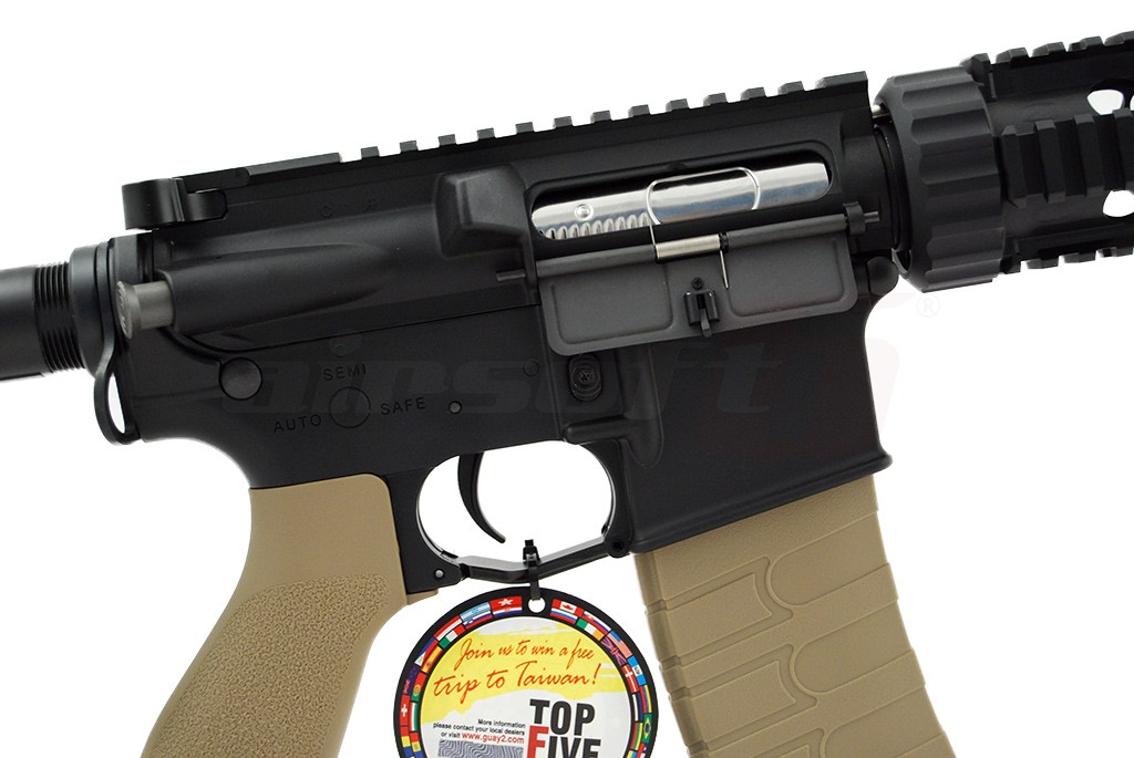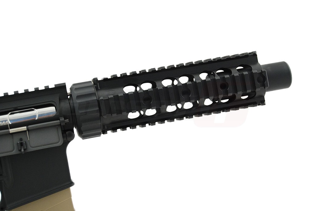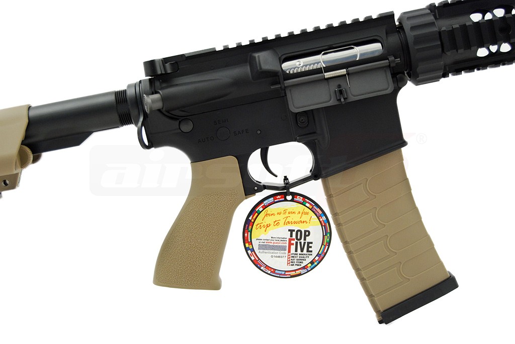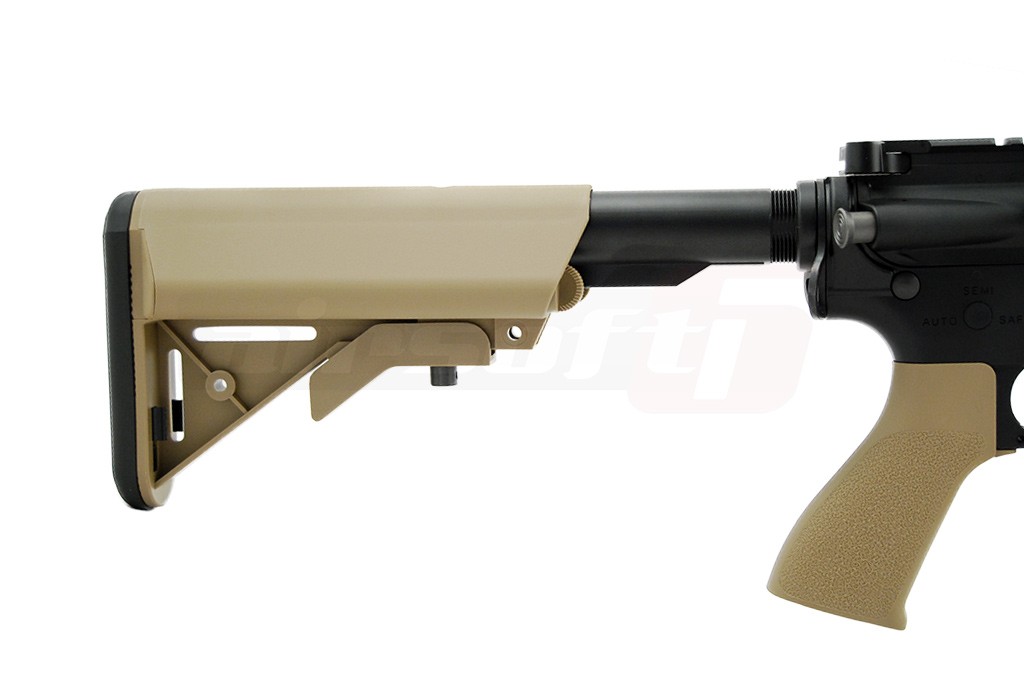 Da, intradevar, corpul replicii de airsoft este fabricat din material plastic dar este vorba de nylon ramforsat, pe care multi jucatori al considera mai rezistent decat anumite metale utilizate de alte replici de airsoft. Jucaria nu este fabricata in intregime din plastic. Anumite elemente de legatura, componente si accesorii, sunt fabricate din metal, pentru a oferi replicii de airsoft o rezistenta imbunatatita. O parte din aceste elemente sunt: sistemul frontal de sine, teava externa, amortizorul si tubul patului iar ca accesorii: butoanele pentru selectia modului de foc, tragaciul, mag-catch-ul dar si altele. Componentele fabricate din plastic sunt: manerul, patul si bineinteles, corpul jucariei. Replica de airsoft nu este prevazuta cu un sistem de ochire integrat si se recomanda achizitionarea unui sistem de ochire avansat. Patul replicii de airsoft este de tip SOPMOD si este reglabil iar spatiul alocat acumulatorului este inclus in interiorul sau. Pentru sustinerea replicii de airsoft, aceasta este prevazuta cu inele laterale in partea din spate a corpului pe care se poate atasa cureaua.