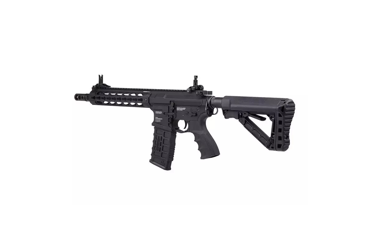 Avem placerea de a va prezenta ultima generatie de replici mainstream marca G&G. Se poate observa ca platforma de baza este binecunoscutul M4 in schimb, precum vorba romaneasca, "seamana dar nu rasare". Producatorul a dotat aceasta platforma cu ultimele inovatii in materie de sisteme de sine si accesorizare dar si un design modern, menit sa ofere o mai buna manevrabilitate. O si mai mare realizare a acestei platforme este electronizarea replcii, beneficiind de avantajele unui mosfet greu accesibil celor cu buget stramtorat.