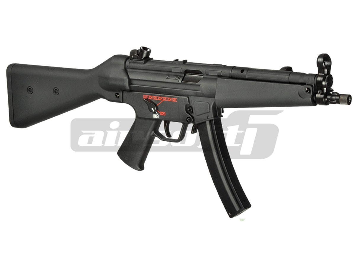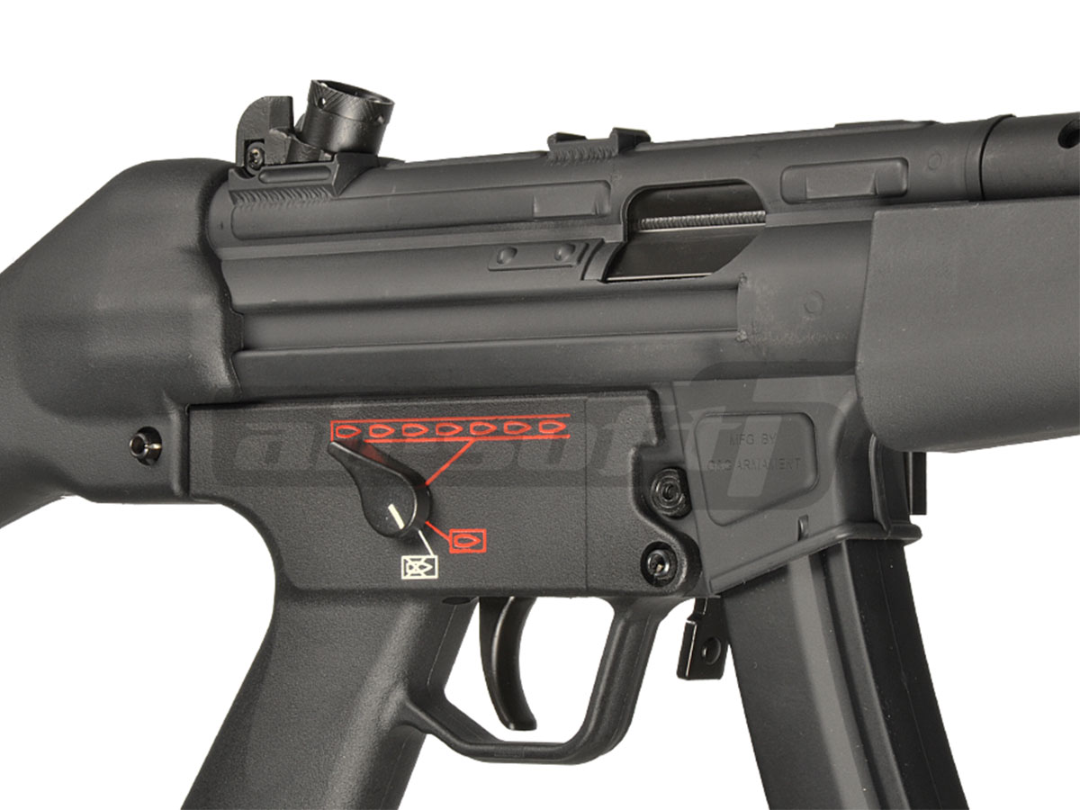Unul din modelele celebrului MP5 construit de Heckler & Koch, MP5-A4 este dotat cu unul din ultimele modele de Trigger Group. Ce diferentiaza acest trigger grup de celelalte modele sunt capabilitatile multiple de tir. Pictogramele clasice SEF adica Safe, Semi, Auto au tost inlocuite cu simboluri reprezentate de gloante pentru o mai buna percepere a functiilor.