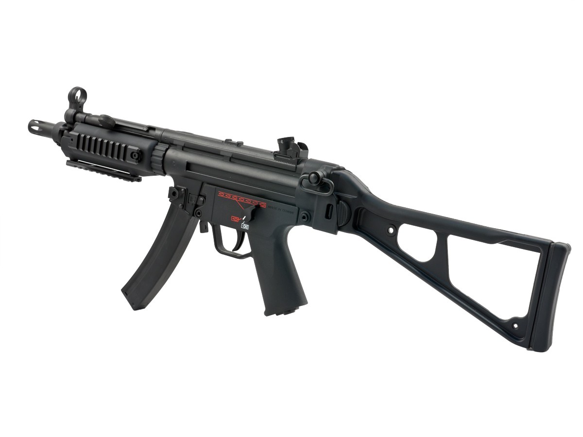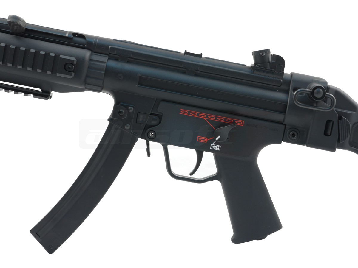 Unul din modelele celebrului MP5 construit de Heckler & Koch, MP5-A4 este dotat cu unul din ultimele modele de Trigger Group. Ce diferentiaza acest trigger grup de celelalte modele sunt capabilitatile multiple de tir. Pictogramele clasice SEF adica Safe, Semi, Auto au tost inlocuite cu simboluri reprezentate de gloante pentru o mai buna percepere a functiilor.
