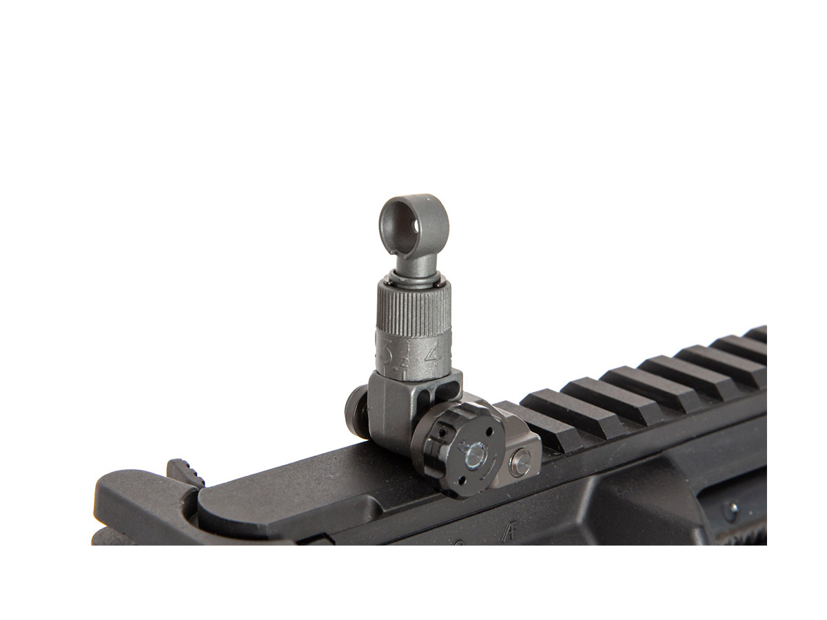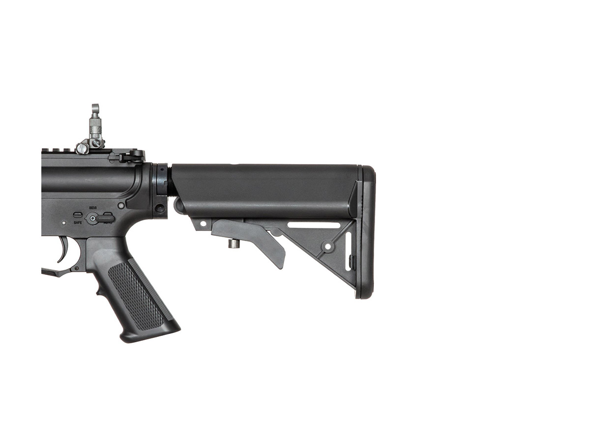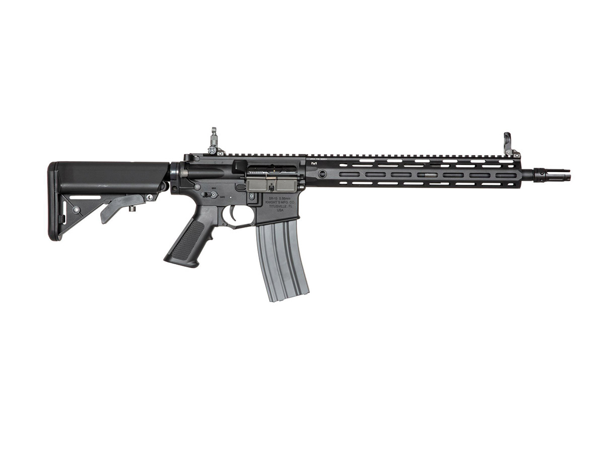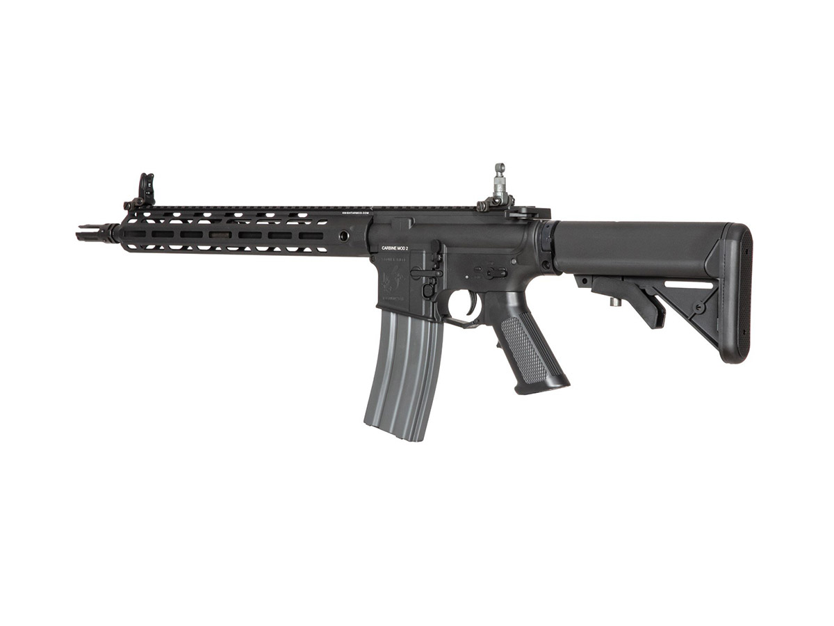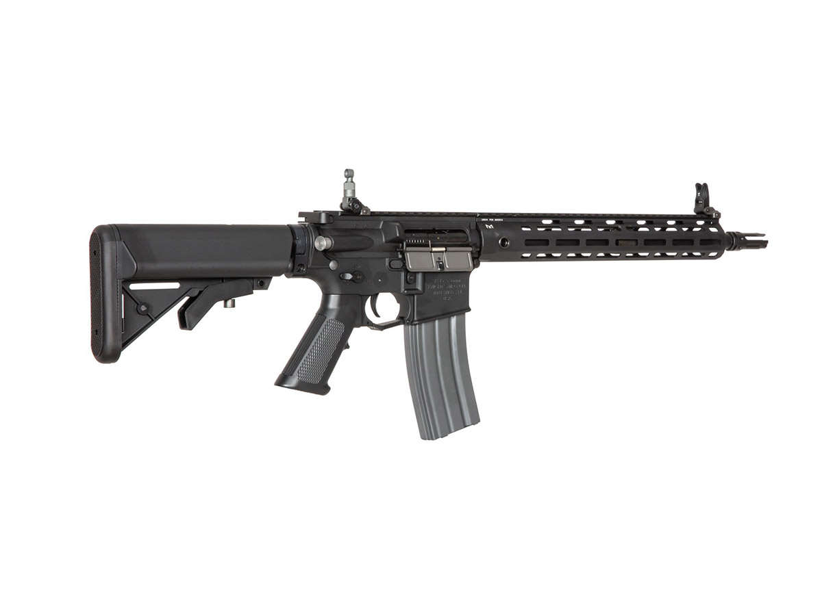 Replica de fata este numita SR15 E3 MOD2 M-Lok Carbine si este orientata catre clasa de asalt. Asa cum am spus, face parte din categoria high end a replicilor fabricate de G&G, astfel, beneficiaza de ultimele inovatii si tehnologii. Corpul este fabricat din aliaj din aluminiu, deasemenea si sistemul frontal de sine M-Lok. Singurele elemente din plastic ABS sunt manerul si patul replicii. Sistemul frontal permite o vasta accesorizare. Acest sistem permite mentinerea unui profil redus atunci cand nu sunt montate accesorii.