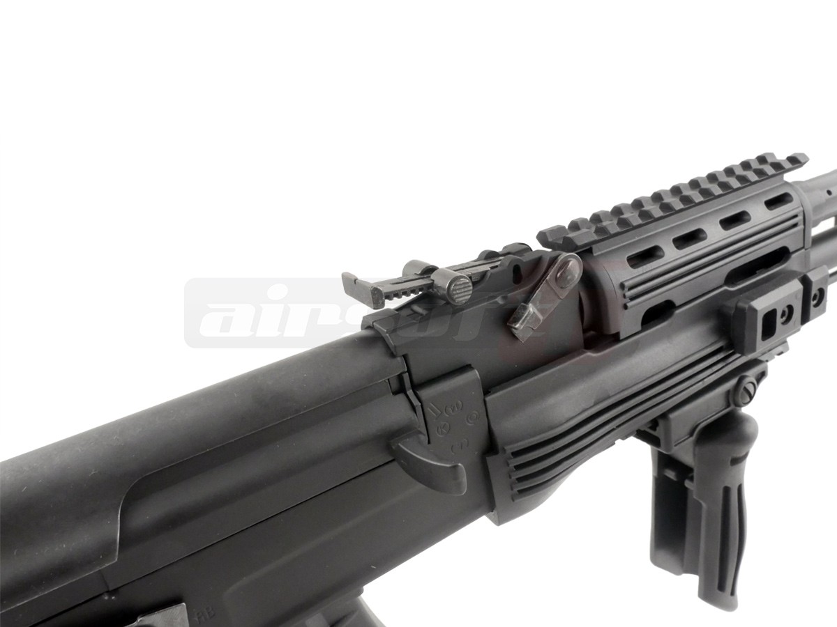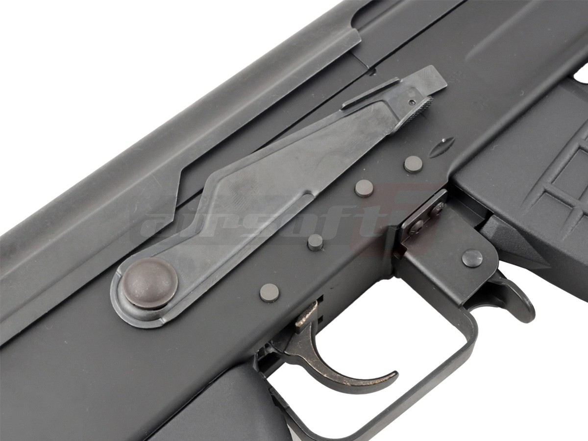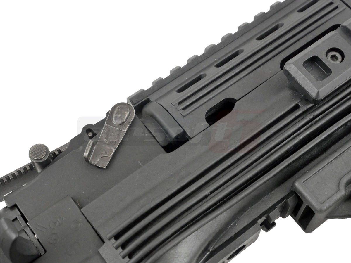 Gearbox-ul replicii este versiune 3 standard, realizat din metal. Daca se doreste un upgrade, pot fi montate o groaza de piese existente pe piata. Motorul replicii este modelul G&P M120 high speed, capabil sa ofere o cadenta de 20+ bile pe secunda cu un acumulator de 9.6V. Camera de hopup permite reglajul nivelului de hopup, permitand o distanta buna de angajament. Viteza rezultata utilizand bile de 0.20g este de 120-125 metri pe secunda.
