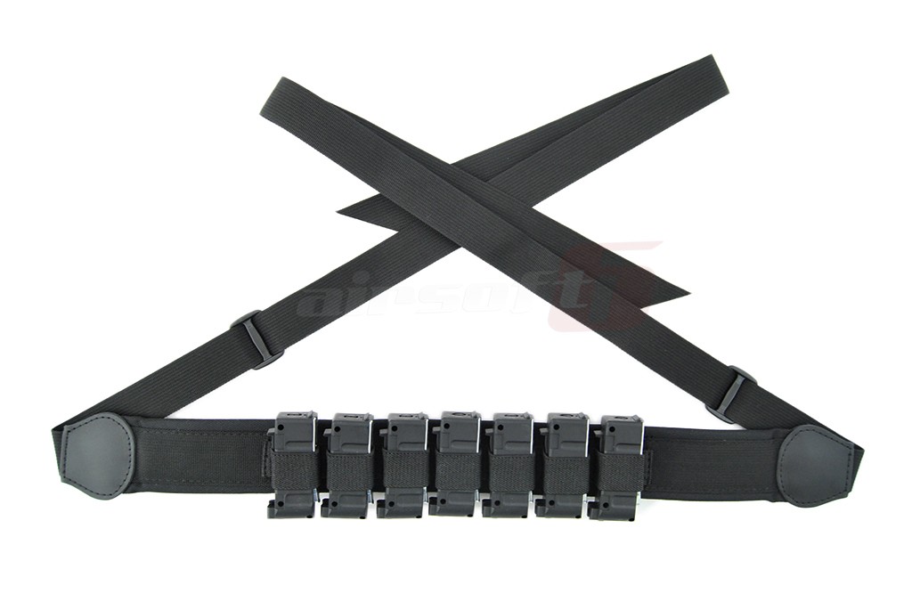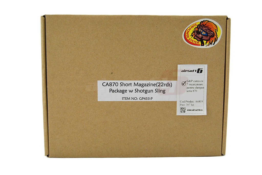 Acest set cuprinde o curea de sustinere destinata replicilor de airsoft tip shotgun seria 870 fabricatie G&P si 7 incarcatoare de bile destinate acestei serii de replici. Acest accesoriu este foarte util acelor jucatori impatimiti ai replicilor de airsoft tip shotgun. Aceste replici au deseori munitia limitata. Avand de rezerva 7 incarcatoare jocul se shimba umpic.