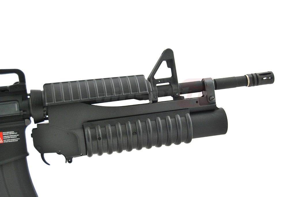 Aceasta replica de airsoft deosebita este bazata pe o platforma binecunoscuta in intreaga lume, M4 si iese in evidenta prin accesoriul atasat in partea frontala menit sa demoralizeze adversarii si sa eficientizeze atacul utilizatorului. Este vorba de lansatorul de grenade M203 scurt. Acest lansator de grenade este utilizat inca din anii 1969, bineinteles de catre fortele armatei americane iar in decursul anilor apreciat si adoptat in intreaga lume de diferite forte armate.