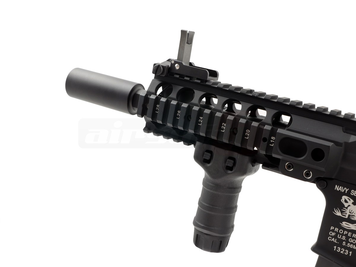 Sistemul revolutionar pe care cei de la LMT l-au gandit iar G&P l-a copiat este upperul sau partea superioara a corpului. Aceasta parte este realizata dintr-o singura bucata de aluminiu inalt aliat, reusind sa scada considerabil greutatea dar totodata sa ofere o rezistenta mult imbunatatita. In partea din fata exista un amortizor ce reuseste sa schimbe tonalitatea replicii. Sistemul frontal de sine va permite o vasta accesorizare replcii; lanterne, lasere, manere, ornamente dar si altele. Replica este prevazuta cu sisteme clasice de ochire rabatabile, ce permit pastrarea lor pe replica chiar si atunci cand sunt utilizate dispozitive de ochire avansate. Pentru o prindere cat mai ferma producatorul a inclus in pachet si un maner vertical de tip Stubby fabricat din ABS cu posibilitatea de prindere pe sina cu sistem rapid.