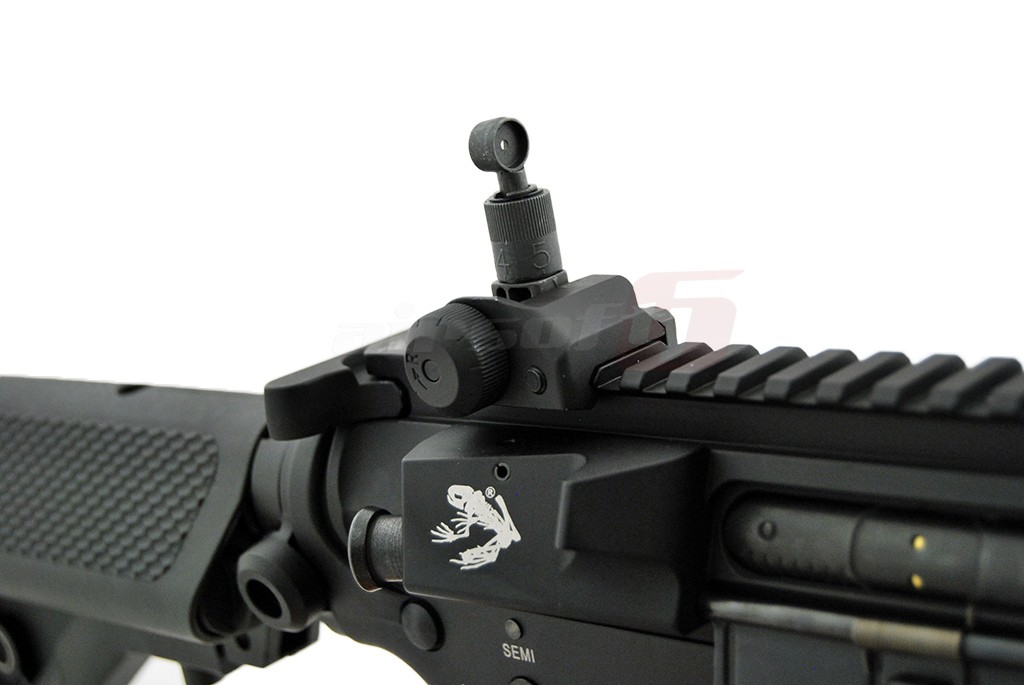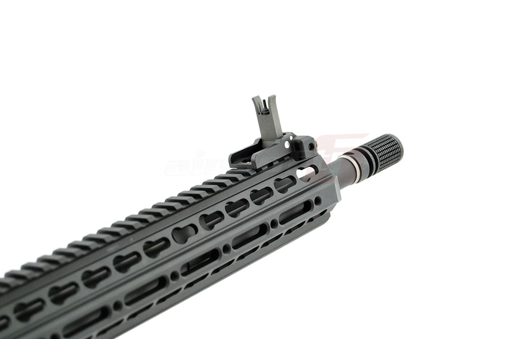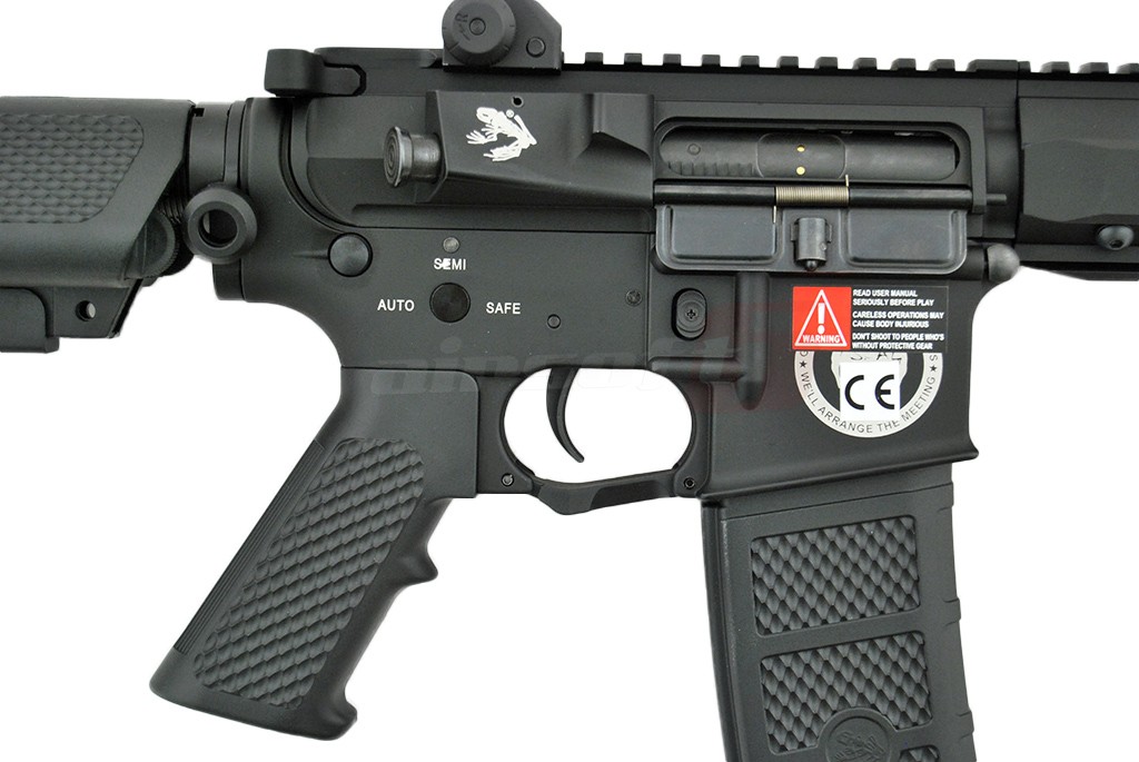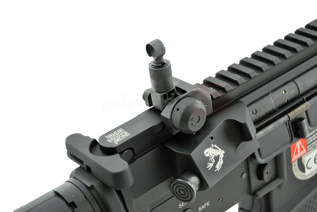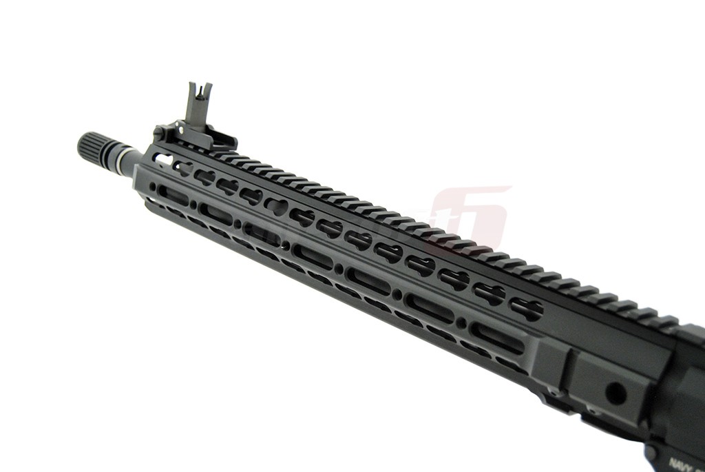 Aceasta minunata replica de airsoft este destinata rolului DMR, Designated Marksman Rifle. Evident datorita lungimii sale. Cum am fost obisnuiti aceasta replica de airsoft fabricata de G&P ofera un nivel de detaliu si o calitate a fabricatiei cel putin impresionante. In partea fronatala exista un sistem de sine modular KEYMOD. In partea din spate a sistemului de sine exista sectiuni cu sine standard pe laterale si in partea de jos. Partea superioara a corpului copiaza modelul Vltor. Tot corpul este fabricat din aliaj de aluminiu si magneziu.Manerul si patul replicii de airsoft sunt fabricate din plastic ABS de calitate. Ambele au sectiuni acoperite cu o textura foarte aderenta menita sa imbunatateasca manevrabilitate. Patul replicii de airsoft este de tip crane si este reglabil pe lungime. Pe aproape toata lungimea partii superioare exista o sina standard pe care pot fi montate accesorii optice si nu numai. Replica de airsoft este prevazuta si cu un sistem de ochire clasic, rabatabil. Nu se stie niciodata cand vom avea nevoie.