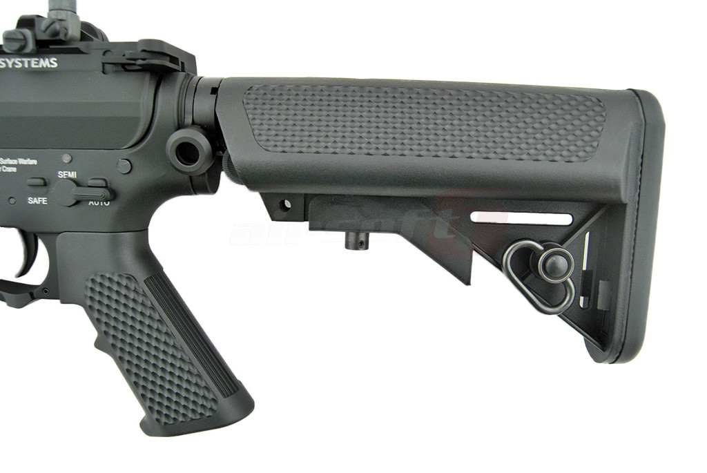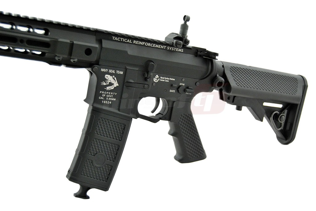 Replica de airsoft este dotata cu mufa Deans mare, replica de airsoft suporta acumulatori de 7.4V LiPo sau 8.4V si 9.6V NiMh. Nu se recomanda folosirea unui acumulator mai mare de 9.6V intrucat replica de airsoft se poate defecta.