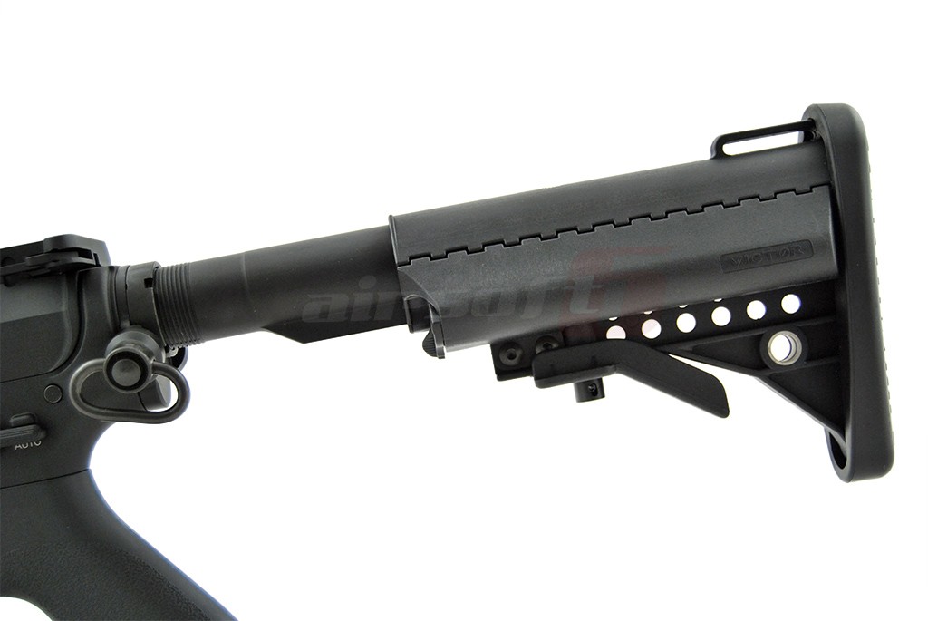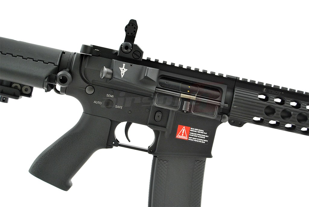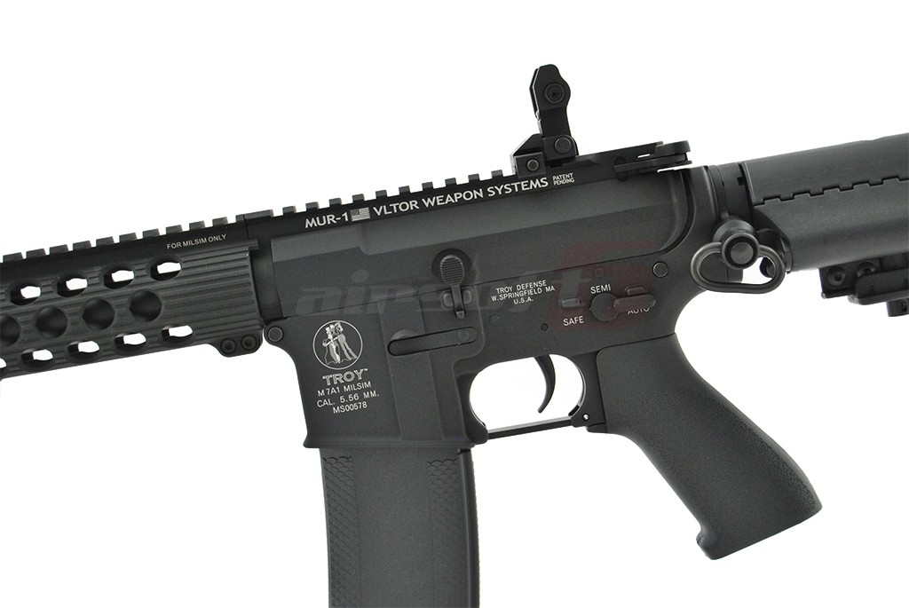 Replica de airsoft este dotata cu un sistem de sine frontal copiat dupa modelele de ultima generatie ale companiei Troy Industries, fabricat din aliaje moderne, usor dar totodata foarte rezistent. Este construita in intregime din aluminiu de calitate usurand astfel greutatea totala a replicii de airsoft. Vopseaua folosita este una speciala rezistenta la uzura. Patul este retractabil cu 5 pozitii de reglaj fabricat din plastic ABS. Corpul si patul replicii de airsoft sunt copiate dupa modelele MUR, oferind un design deosebit fata de clasicul M4.