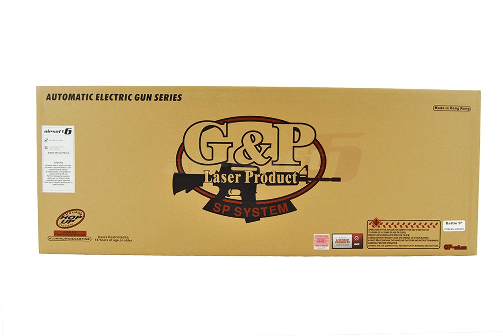 Gearboxul replicii de airsoft este versiune 2 prevazuta cu rulmenti de 8 mm din otel de calitate. Interiorul gearboxului este foarte atent prelucrat; rotile sunt fabricate dintr-un metal dur si rezistent la uzura, shimingul este foarte bine pus la punct. Capul de cilindru este din aluminiu deasemenea ca si nozzle-ul care este prevazut la randul lui cu o-ring de etansare. Cilindrul este portat specific G&P, adica alezat in interior spre capatul opus evacuarii. Bilele actionate au o viteza de aprox 105-110 m/s masurata cu bile de 0.20g.