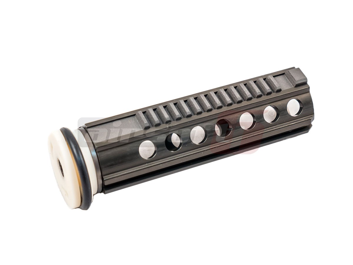 Piston din aluminiu marca G&P. Acest piston are 18 dinti din otel iar corpul sau este realizat din aluminiu. Ce putini cunosc este ca odata montat corect, acest piston este unul dintre cele mai rezistente pistoane existente pe piata. In ciuda greutatii mari, acest piston poate oferi jucariei dumneavoastra o autonomie de functionare extraordinara. Mare atentie insa, nu este nemuritor. Montat gresit se poate defecta, greu, dar se va defecta. Pistonul este livrat cu cap piston din poliacetal si garnitura de etansare.
