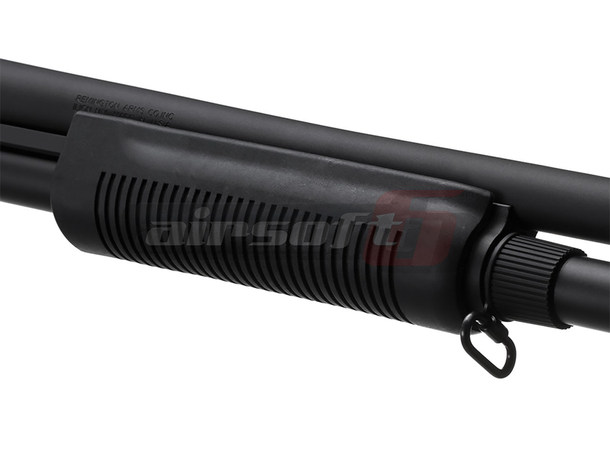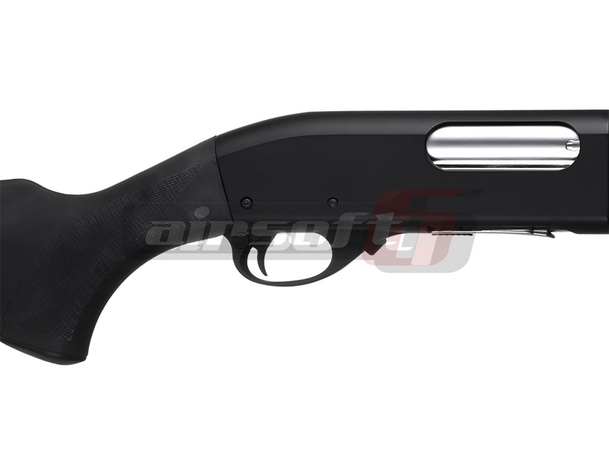 Acest shotgun fabricat de G&P este bazat pe modelul binecunoscut in intreaga lume, Remington 870 "Wingmaster" aparut in anul 1950 devenind popular in america fiind utilizat in multe domenii de activitate. Vanatoare, Militar, Forte de ordine si multe altele. Exista nenunmarate versiuni si adaptari ale acestei platforme. Principiul replicii de airsoft copiaza mult principiul armei adevarate. Pentru fiecare armare poate fi angajata o bila. Puterea necesara este rezultata din comprimarea unui arc intern.
