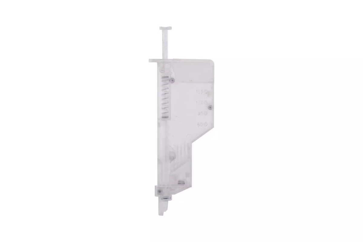 Alimentator pentru bile marca GFC. Este fabricat din plastic transparent pentru a urmari mai usor cantitatea de bilele ramasa. Capacitatea de stocare este de aproximativ 150 de bile.