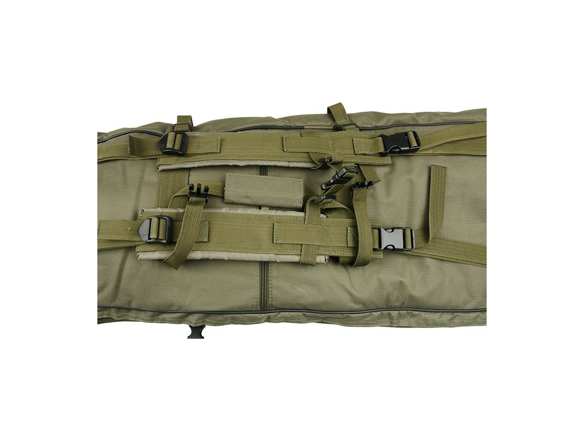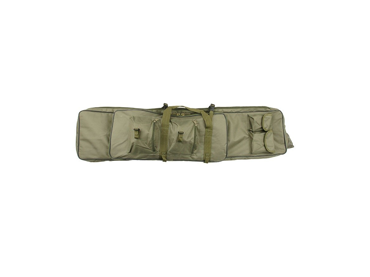 Geanta destinata transportului replicilor de airsoft. Aceasta geanta prezinta 2 compartimente de depozitare. Un compartiment cu lungimea de 120 cm destinat replicilor de dimensiuni mari, un compartiment mai mic pentru pistoale sau replici de dimensiuni mici si patru buzunare in partea frontala pentru folosite pentru depozitarea incarcatoarelor, grenadelor sau altor accesorii. Compartimentele sunt prevazute cu fermoar cu cap dublu. Geanta este prevazuta cu sisteme de asigurare a replicilor in interiorul compartimentelor.