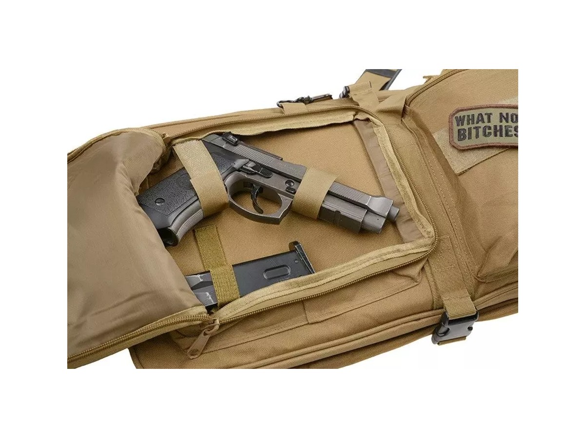 Geanta destinata transportului replicilor de airsoft. Aceasta geanta prezinta 2 compartimente de depozitare. Un compartiment cu lungimea de 84 cm destinat replicilor de dimensiuni mari, un compartiment mai mic pentru pistoale sau replici de dimensiuni mici si patru buzunare in partea frontala pentru folosite pentru depozitarea incarcatoarelor, grenadelor sau altor accesorii. Compartimentele sunt prevazute cu fermoar cu cap dublu. Geanta este prevazuta cu sisteme de asigurare a replicilor in interiorul compartimentelor.