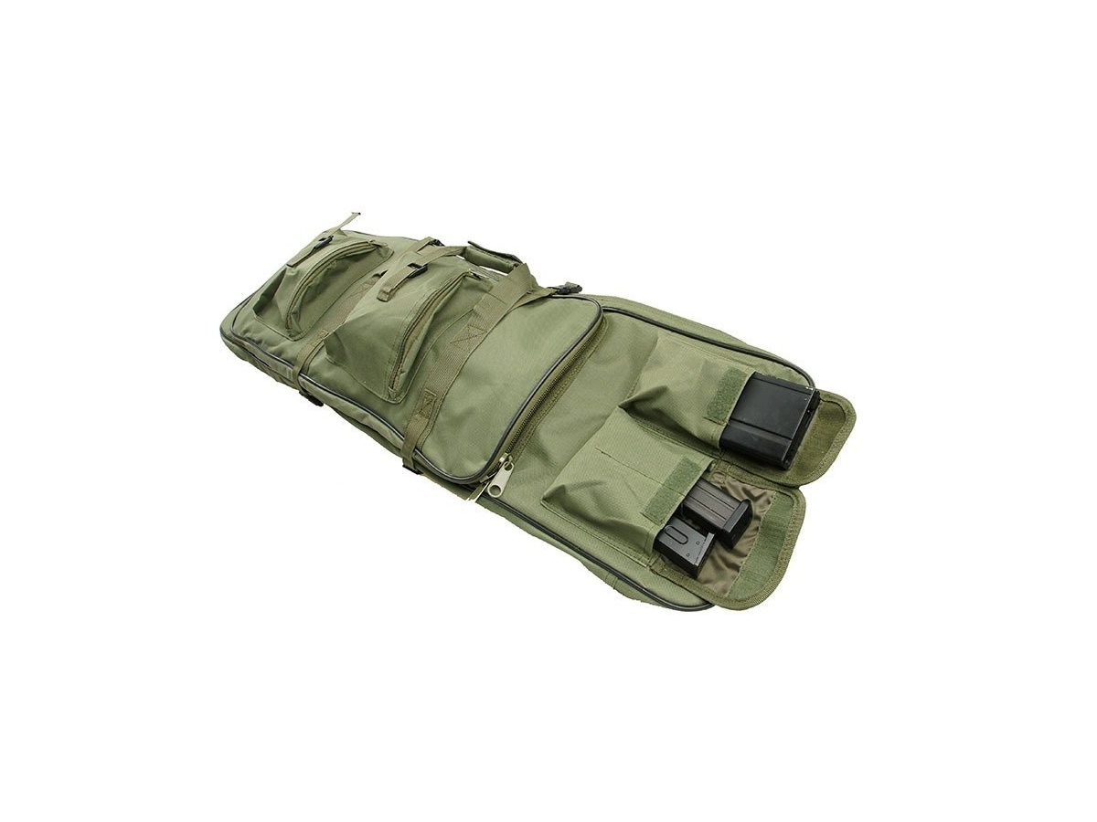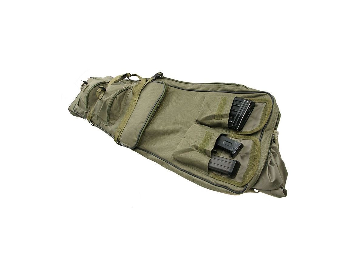Geanta destinata transportului replicilor de airsoft. Aceasta geanta prezinta 2 compartimente de depozitare. Un compartiment cu lungimea de 96 cm destinat replicilor de dimensiuni mari, un compartiment mai mic pentru pistoale sau replici de dimensiuni mici si patru buzunare in partea frontala pentru folosite pentru depozitarea incarcatoarelor, grenadelor sau altor accesorii. Compartimentele sunt prevazute cu fermoar cu cap dublu. Geanta este prevazuta cu sisteme de asigurare a replicilor in interiorul compartimentelor.