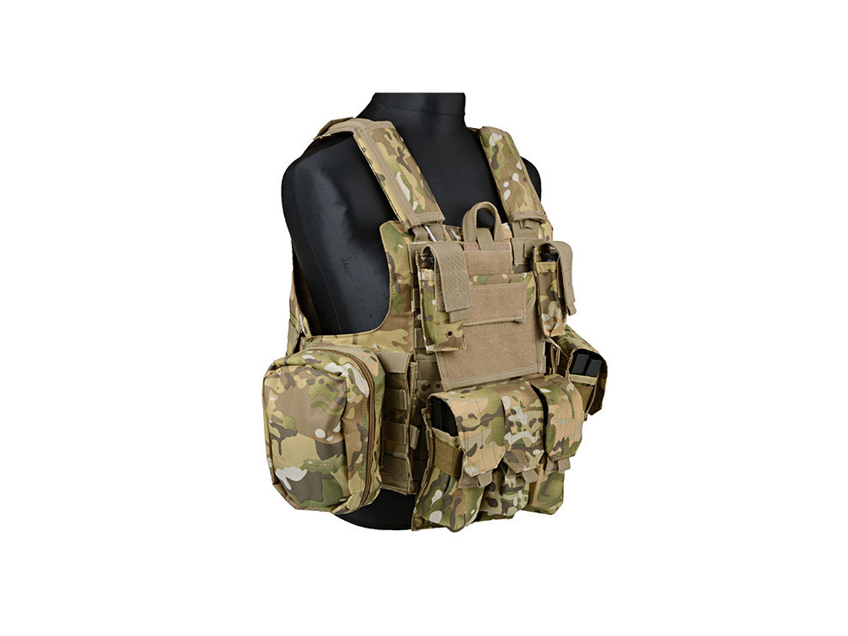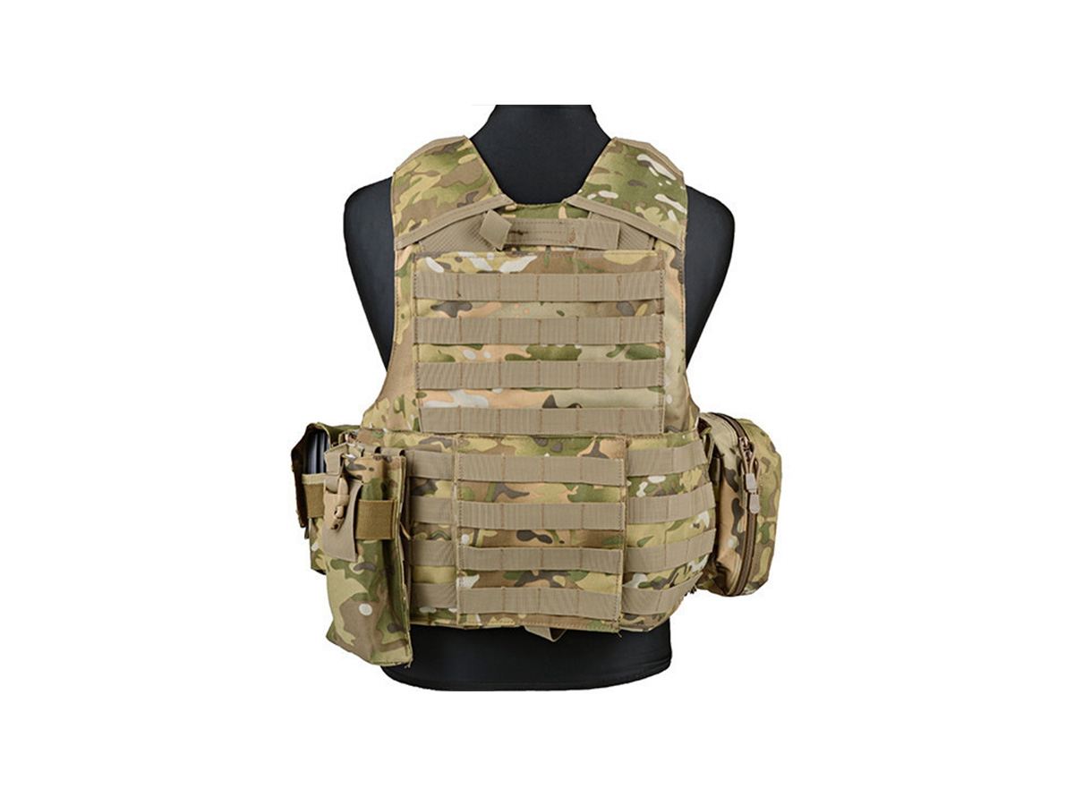 In pachet sunt incluse: 5 buzunare port incarcatoare replica principala, un admin pouch, pouch pentru lanterna, pouch pentru statie, un buzunar cu fermoar utilitar. Aceasta vesta este dotata cu sistem de detasare rapida, iar actionarea este precum cea a vestei originale, in partea frontal superioara a vestei.