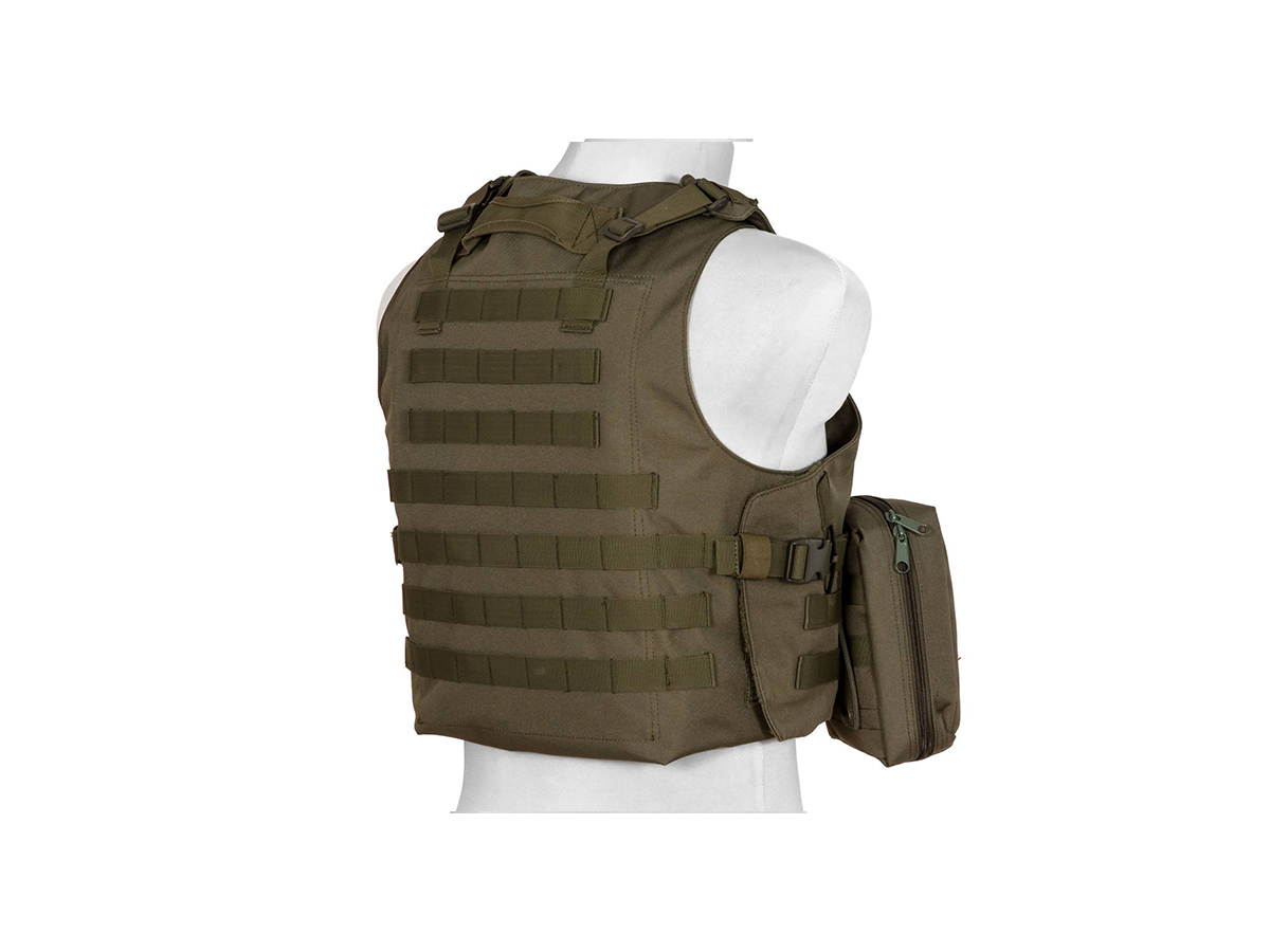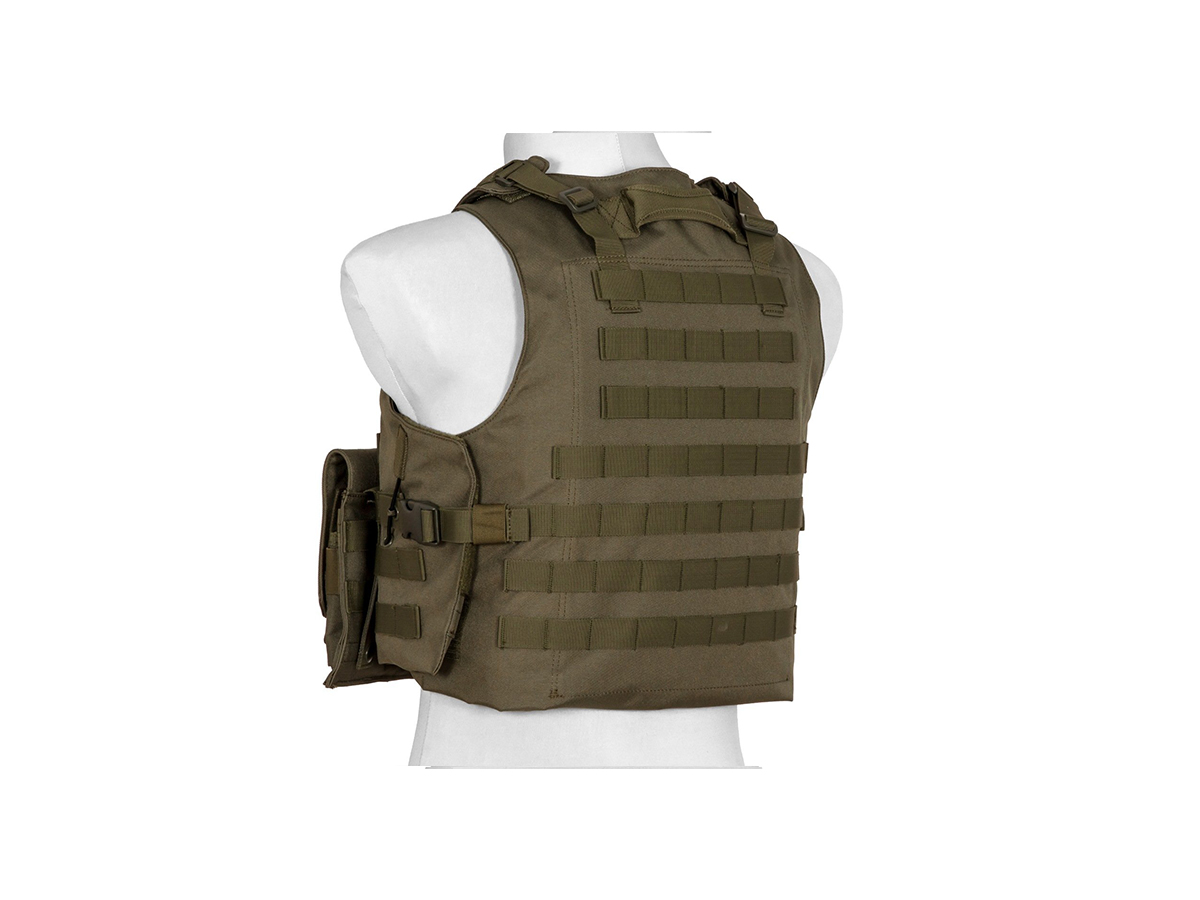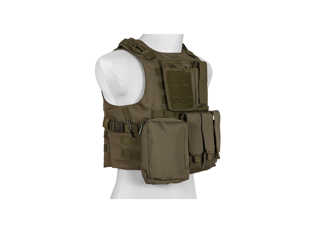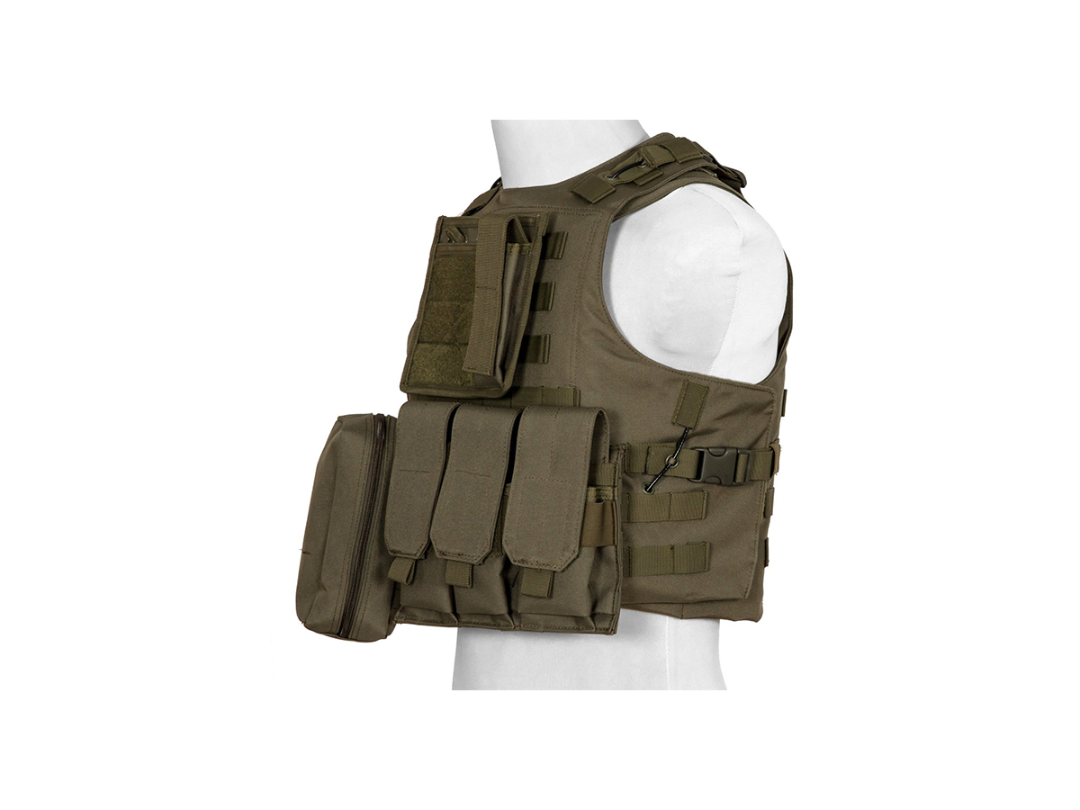 Replica dupa un model celebru AAV FSBE QR, aceasta vesta incorpozeaza toate elementele importante ale vestei adevarate. Materialele folosite si sistemele de prindere sunt foarte rezistente. Baza vestei constituie o platforma molle pe care pot fi atasate o multitudine de buzunare utilitare si accesorii. In pachet sunt incluse 2 port incarcatoare duble mari, un buzunar cu fermoar, un buzunar utilitar cu chinga si un port harta cu buzunar pentru incarcator. Marimea vestei este reglabila.