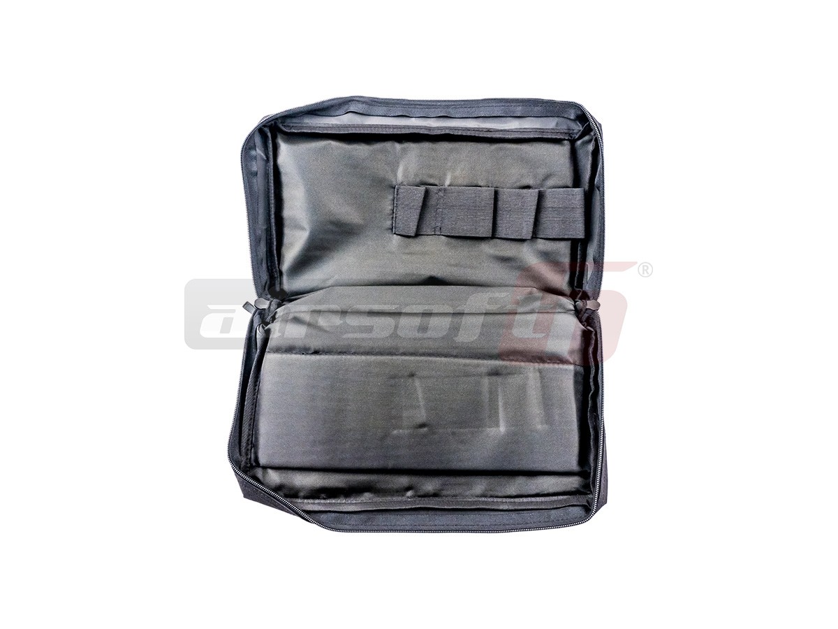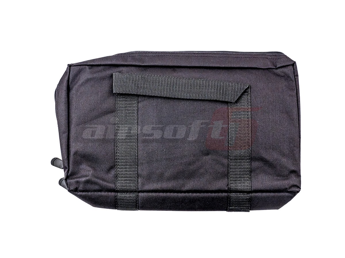 Geanta pentru pistoale de airsoft inscriptionata Glock. Aceasta geanta este capabila sa transporte pistoale de dimensiuni medii spre mari si incarcatoare de rezerva. Este fabricata din nylon si iar interiorul peretilor exista material moale pentru protectie. Compartimentul interior este prevazut cu benzi elastice pentru fixarea incarcatoarelor si un buzunar mare pentru pistoale. Geanta este asigurata cu ajutorul unui fermoar dublu. In partea frontala mai exista un buzunar de mici dimensiuni deasemenea asigurat cu fermoar.