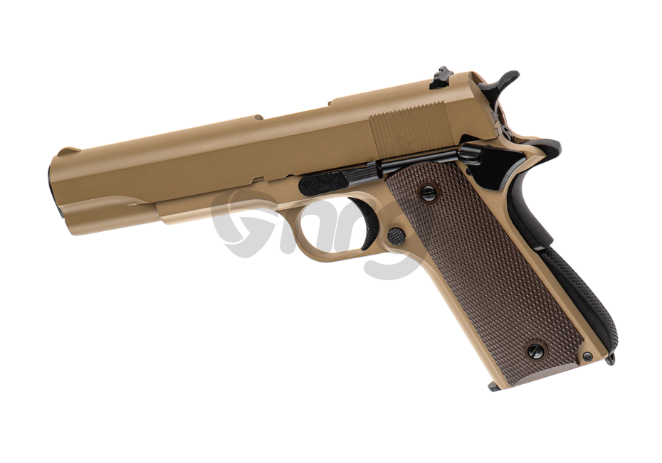 Replica de airsoft Colt 1911 fabricat de Golden Eagle este copie 1:1 cu arma reala. Constructia este din metal fapt de ofera o senzatie specifica manuirii unei arme reale. Functionalitatea replicii este intocmai cu autenticul 1911. Efectul de recul in momentul actionarii pistolului este puternic, contribuind la nota de autenticitate a acestei replici de airsoft.