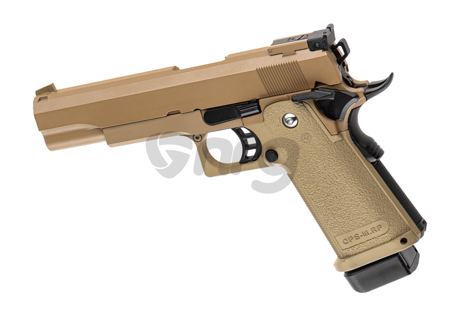 Golden Eagle replica cu mici modificari STI 2011 tactical. Este construit in intregime din metal si toate elementele specifice hicapa sunt unde trebuie sa fie, piedica activa situata pe maner si siguranta pentru cocos, specifice clasicului 1911. Un avantaj oferit de acest design este ca odata avariata o anumita componenta aceasta poate fi inlocuita individual datorita multitudinii de piese existente pe piata.
